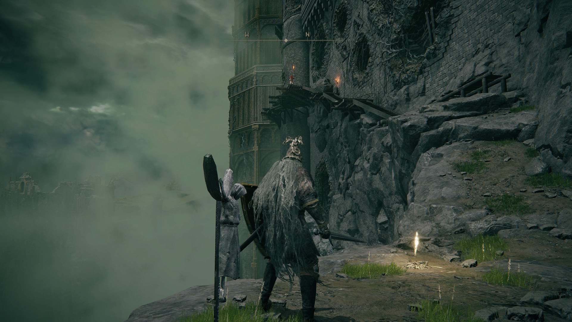Folgt Elden Ring hier einfach einem Trend oder bietet das effektiv einen Mehrwert? Ich finde definitiv Letzteres. Das Gefühl einer organischen, großen Welt mit markanten Gebäuden in weiter Ferne weckt in mir jedenfalls den Abenteuerdrang. Wobei man auf dem Weg dorthin bestimmt wieder von selbem abkommt, weil gerade eine Gegnergruppe, ein NPC, eine Ruine, einer der Mini-Dungeons oder schlicht ein Gegenstand die Aufmerksamkeit auf sich zieht. Durch Schnellreise und das Spektralross sind die großen Distanzen zudem kein Problem, langweiliges Hin und Zurück bleiben so erspart.