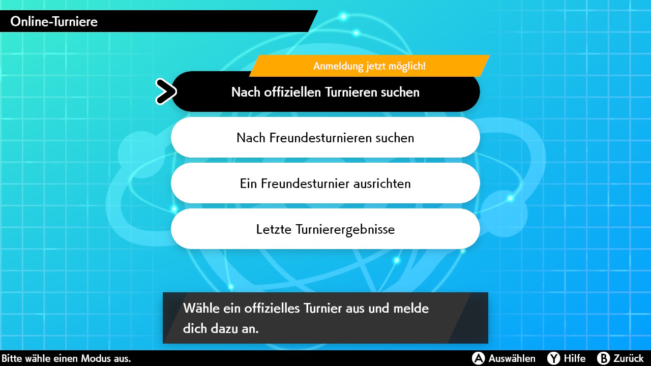 Um sich für das zweite Turnier zu registrieren, müsst ihr euch in Pokémon Schwert oder Schild im Menü unter VS-Kampf (Kampf-Stadion) einloggen. Wählt dort den Menüpunkt „Online-Turniere“ aus und sucht anschließend nach „offiziellen Turnieren“.