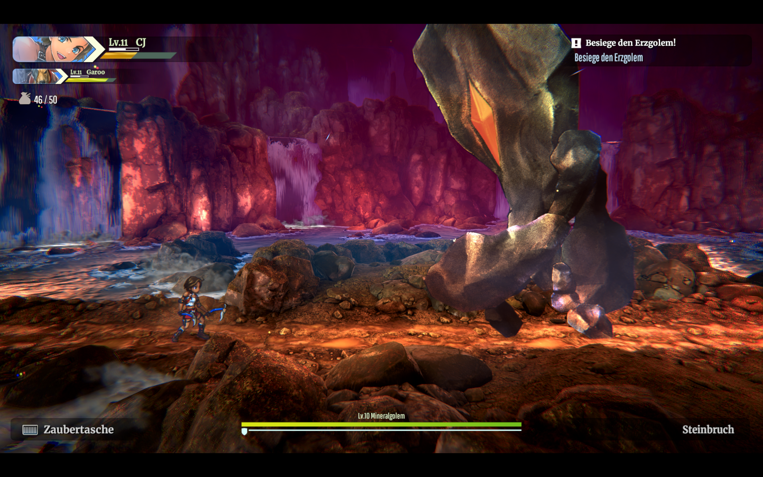 Sobald der zweite Charakter dazustößt, kann man etwas mehr variieren. Nun steuert man zwei Figuren zugleich. Man läuft zwar nur mit einem Charakter umher, aber kann den zweiten (und später auch dritten) per Knopfdruck bei Angriffen dazuschalten. Jeder Charakter hat eigene Angriffsmuster (flink, hohe Reichweite, Fernkampf). Durch die richtige Kombination von Einzelangriffen kann man zudem Kombinationsangriffe auslösen, die nicht nur äußerst mächtig sind, sondern auch cool aussehen.