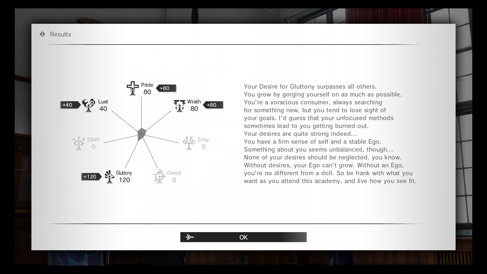 Daneben lassen sich auf dem gesamten Campus Kristalle finden. Diese beinhalten kleine Verbesserungen für beispielsweise Angriff oder Verteidigung und gelten dauerhaft für die gesamte Party. Diese sind aber an Werte gekoppelt, die mit eurer Persönlichkeit zusammenhängen. Ihr erinnert euch an die verschiedenen Todsünden? Diese Ausrichtungen spiegeln auch eure Persönlichkeit wider und können auf verschiedenen Wegen erhöht werden.