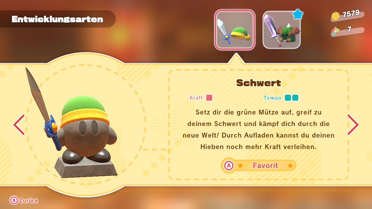 Dass jede Fähigkeit über Werte in Kraft und Tempo verfügt, spielt bei der Aufwertung jedoch keine so große Rolle. Natürlich ist jede Aufwertung eine Verbesserung, aber schwer ist Kirby und das vergessene Land nicht, sodass es darauf nicht wirklich ankommt. Für ganz junge Spieler gibt es den Frische-Brise-Modus, der das Abenteuer noch leichter macht. Allen anderen lege ich den Wilden Modus ans Herz, der sich von der Schwierigkeit her wie die alten Kirby-Spiele anfühlt und in den letzten zwei Welten dann durchaus auch die ein oder andere Herausforderung bereithält.