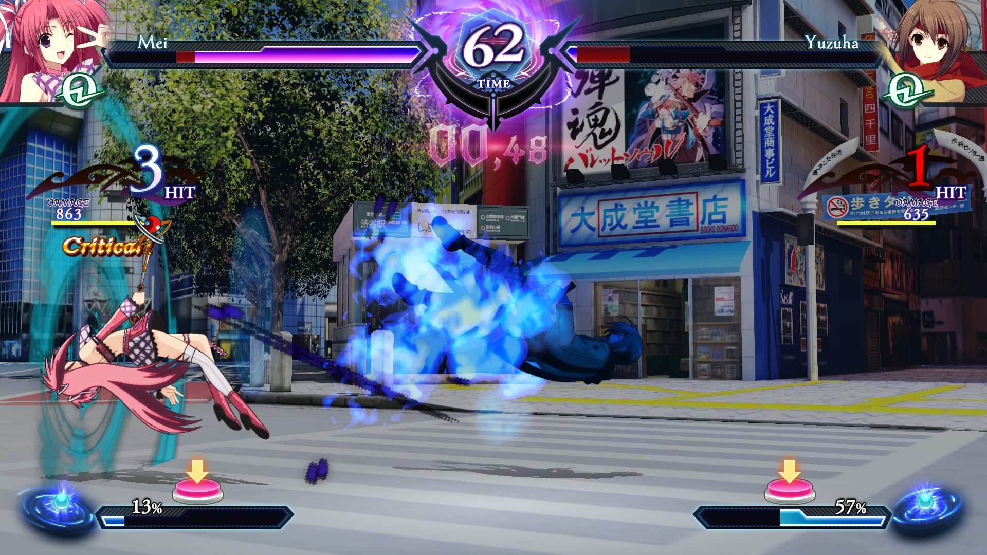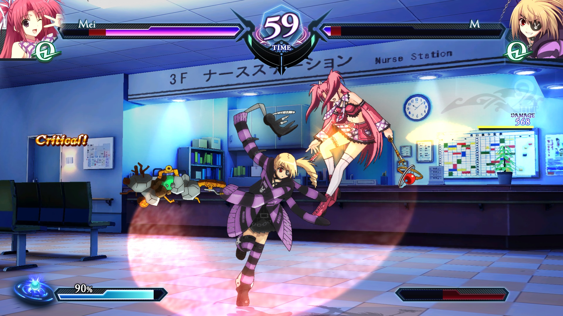 Womit wir auch schon beim Gameplay angekommen sind. Bei Phantom Breaker: Omnia handelt es sich um ein klassisches 2D-Beat-’em-up. Die Kämpfe sind recht schnell und durch eine simple Menüsteuerung lassen sich recht gut Kombinationen aneinanderreihen. Hier gilt wie immer das Prinzip: einfach zu lernen, schwer zu meistern.
