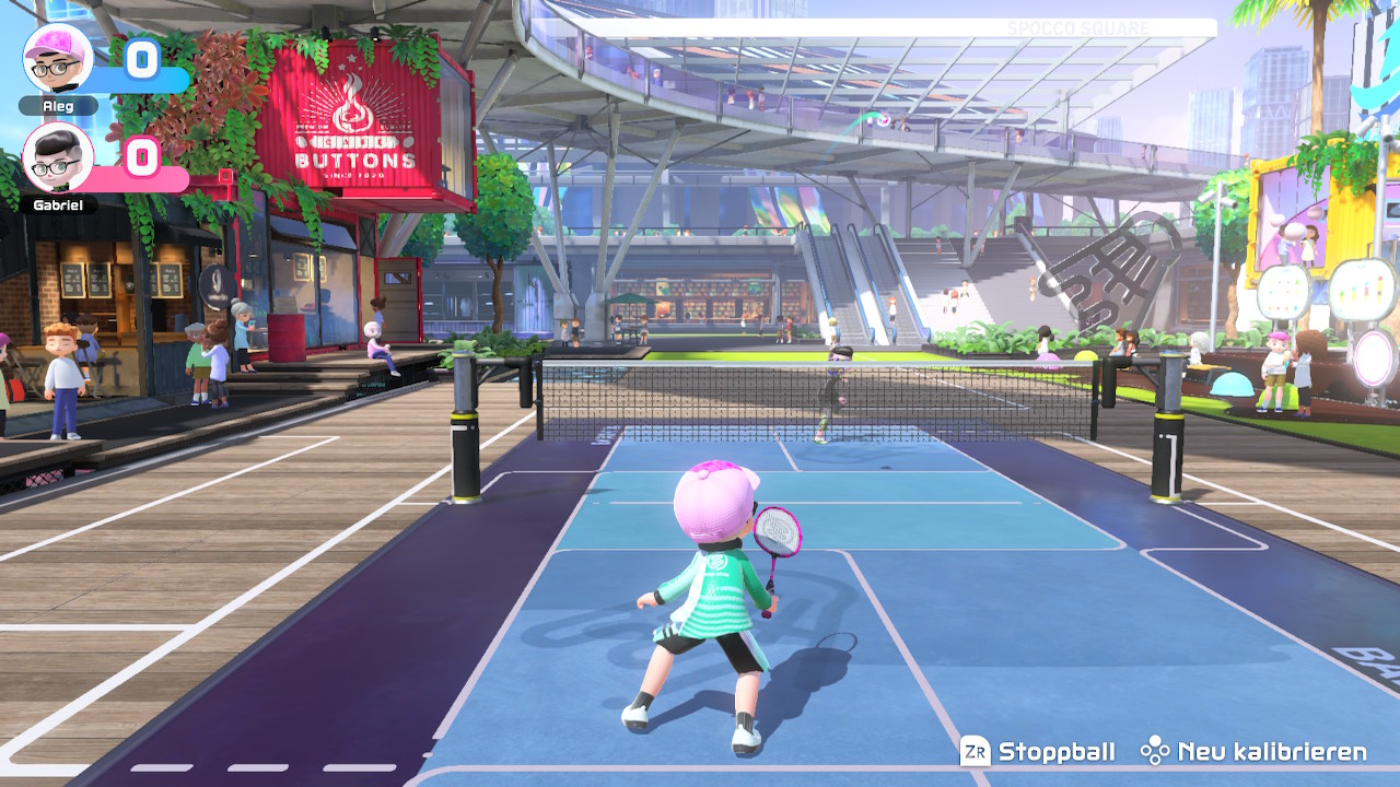 Nintendo Switch Sports zeigt sich im Vergleich mit dem ursprünglichen Wii Sports als sehr zeitgemäß. Das spiegelt sich im Spocco Square wider, der ein umfangreiches Sportzentrum darstellt. In schicken Gebäuden mit moderner Architektur treten wir als Sportler in den diversen Sportarten an. Die Umgebungen der Spielfelder sind daher sehr eindrucksvoll entworfen worden.