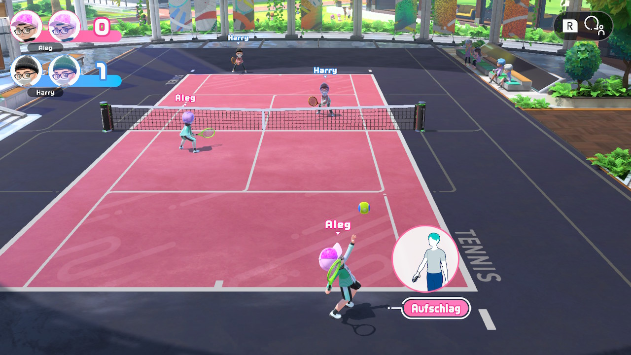 Ist der Avatar erstellt, kann das Sportspektakel losgehen. Wie für die Serie gewohnt, stehen hier mehrere Sportarten zur Verfügung, die per Bewegungssteuerung gespielt werden. Tennis, Badminton, Bowling und Volleyball werden mit nur einem Joy-Con gespielt, Chanbara je nach Schwert wahlweise mit einem oder zwei, Fußballmatches hingegen können nur mit zwei Joy-Con bestritten werden. Gemeinsam haben die Sportarten hier eines – schwungvolle Bewegungen sind zum Spielen nötig. Daher sollte immer auf die Umgebung und Mitspieler geachtet werden. Schauen wir uns die Sportarten etwas genauer an, ein paar von diesen kennen Serienfans bereits.