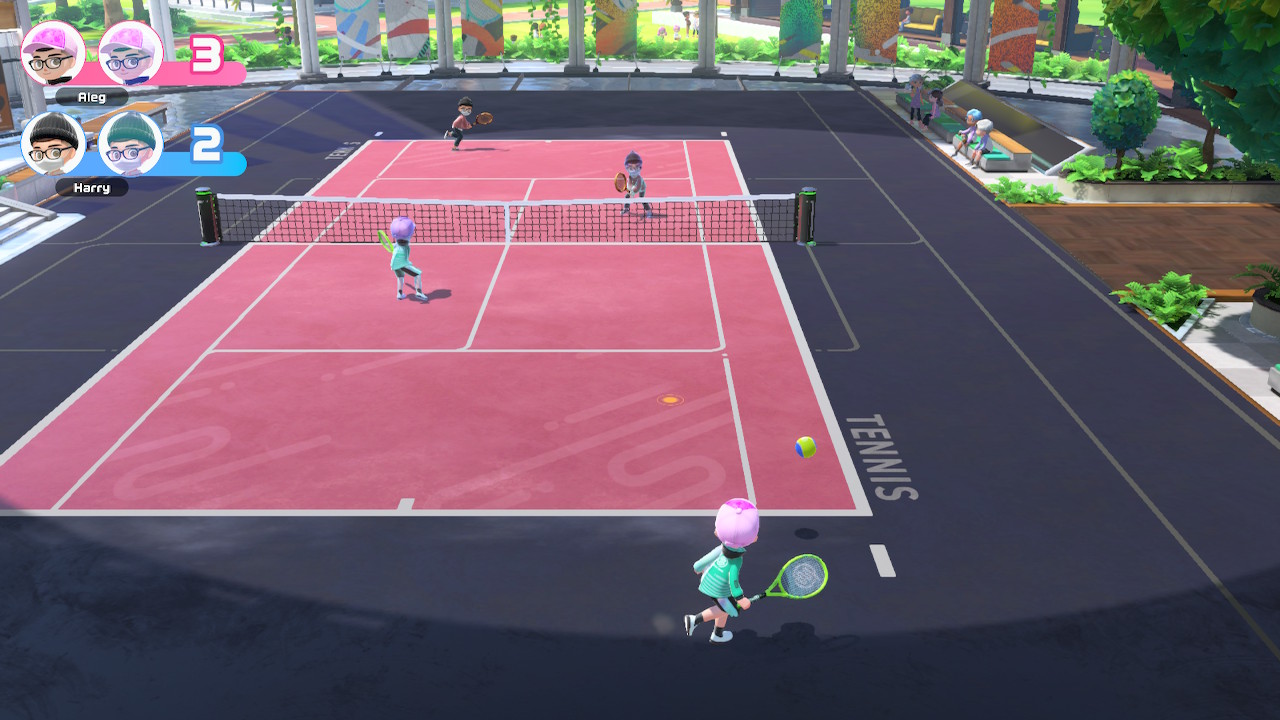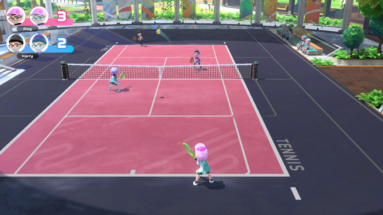 In Switch Sports finden sich insgesamt vier Streiter auf dem Tennisfeld. Entweder vier individuell gesteuerte Charaktere oder ein Avatar plus Kopie pro Feldseite, die beide vom jeweiligen Spieler gesteuert werden. Die Füße in die Hand nehmen die Avatare selbst, sodass die Konzentration auf dem Ball und dem Treff-Timing liegen sollte. Vorhand- und Rückhandschläge, Spin, Lobs und Schmetterschläge sind möglich und notwendig, um dem Gegner die notwendigen Punkte für den Sieg abzuringen.