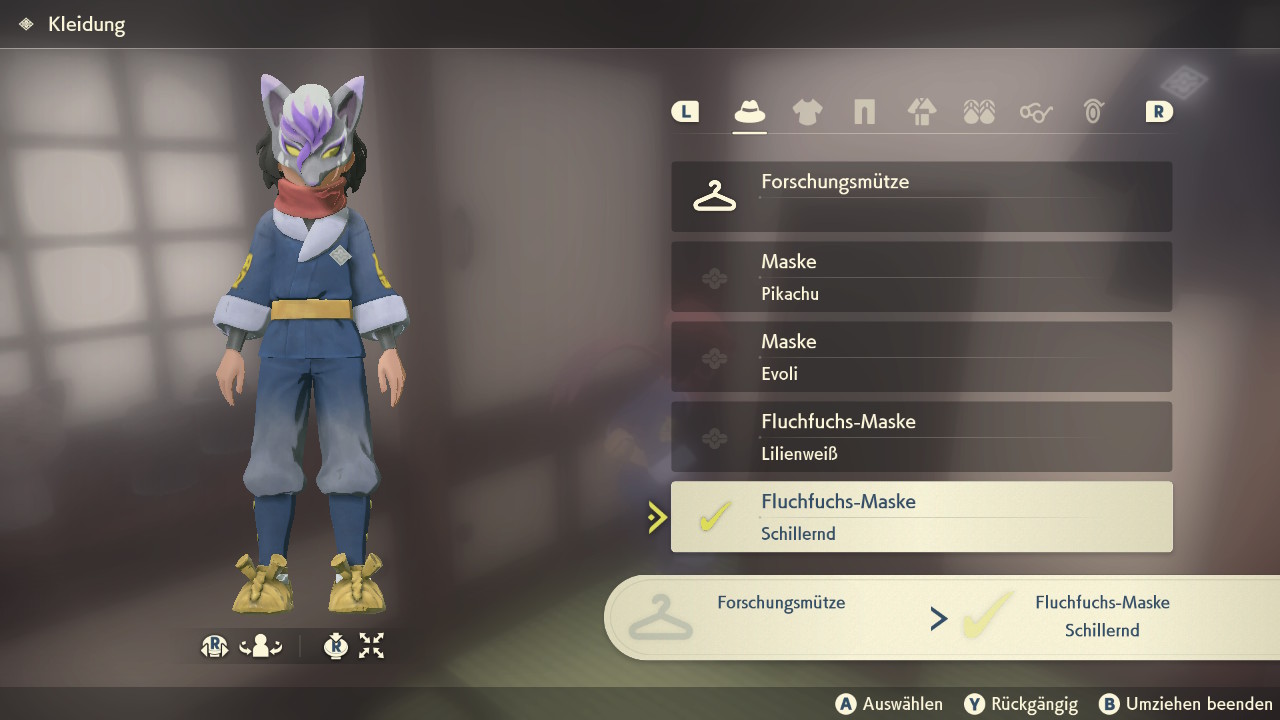 Nutzt die „Geheimgeschenk“-Funktion von Pokémon-Legenden: Arceus und wählt dann „per Internet empfangen“, um euch die Fluchfuchs-Maske (Schillernd) ins Inventar zu holen. In eurer Hütte in Jubeldorf könnt ihr die Maske dann anlegen.