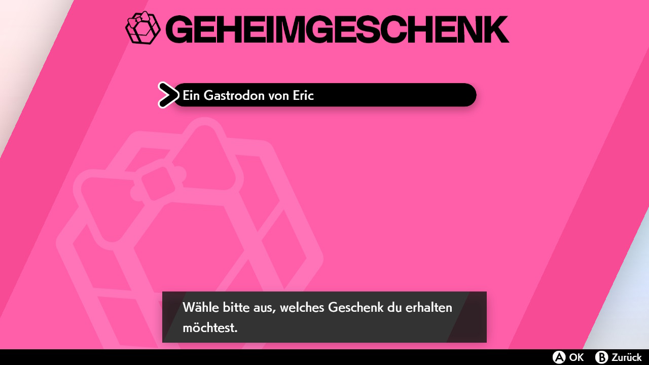 Ihr könnt den Code über die Geheimgeschenk-Funktion (per Seriencode) einlösen. Vergesst nicht, anschließend zu speichern! Das Gastrodon ist von Level 50 und trägt das Item Überreste. Es beherrscht die Angriffe Schutzschild, Gähner, Eisstrahl und Erdkräfte.