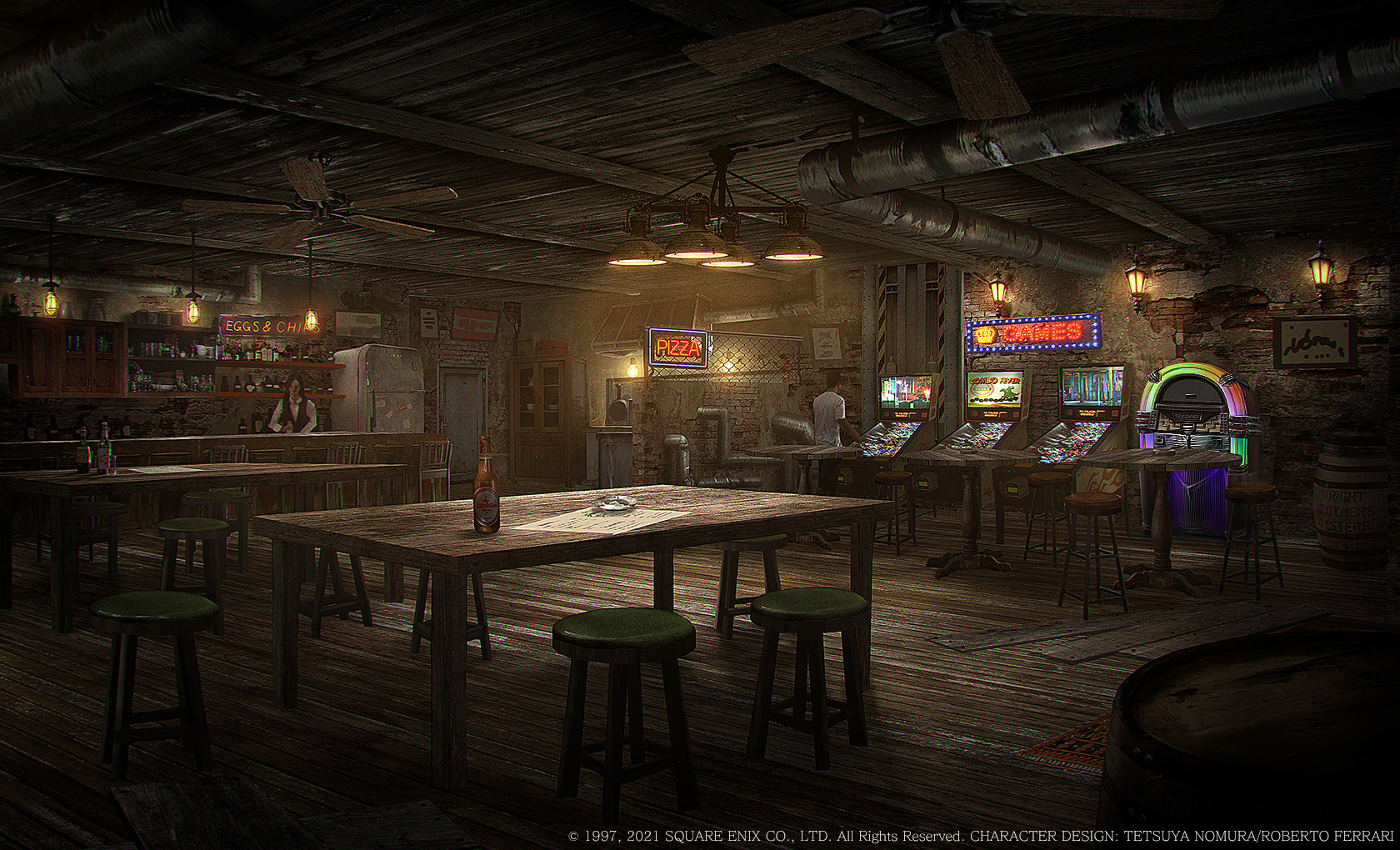Der Siebte Himmel ist wohl eine der berühmtesten Locations in Final Fantasy VII. Auch deshalb bekam die Bar in Final Fantasy VII Remake natürlich eine aufmerksame Behandlung. Tifas Bar ist ein „beliebter Treffpunkt für die Arbeiter nach Feierabend“, so beschreibt es ein Ladebildschirm in Final Fantasy VII Remake.