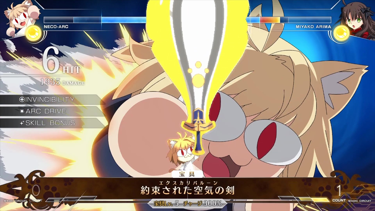 Mash Kyrielight kämpft mit einem großen Schild, womit sie blocken und den Gegner unter Druck setzen kann. Sie ist auch für Anfänger geeignet. Neco-Arc wird hingegen als einzigartiger Charakter mit zufälligen Fähigkeiten beschrieben, welcher das Kampfgeschehen aufmischt. Glück ist zum Sieg entscheidend.