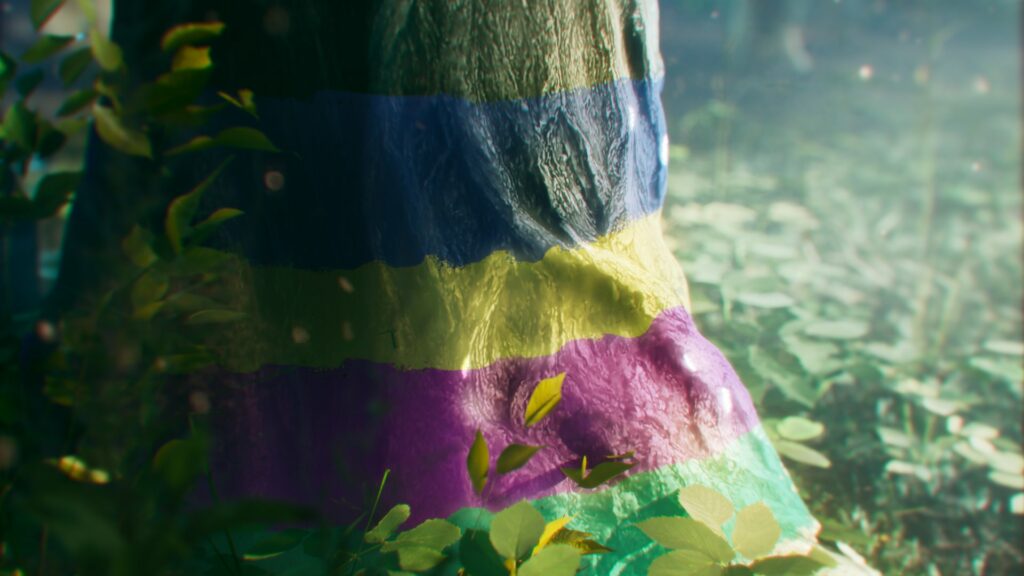 Viele Kommentare spannen auch den Bogen zum sogenannten Oma Forest. Diesen „bemalten Wald“ hat der baskische Bildhauer und Maler Agustin Ibarrola im Naturschutzgebiet Urdaibai erschaffen. Die optischen Parallelen sind wirklich auffällig, aber ob es damit zu tun hat?