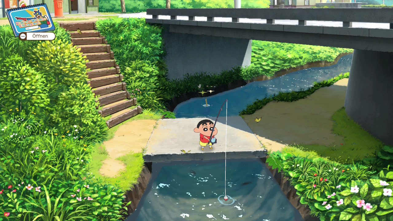 Ein Schlüsselelement des Spiels ist das Tagebuch, in dem Shin chan alle Aktivitäten festhält. Auf sehr charmante Weise wird dort nicht nur die Handlung bebildert festgehalten. Auch Beschreibungen zu den Fischen und Insekten finden sich dort – stets aus der Perspektive eines Fünfjährigen.