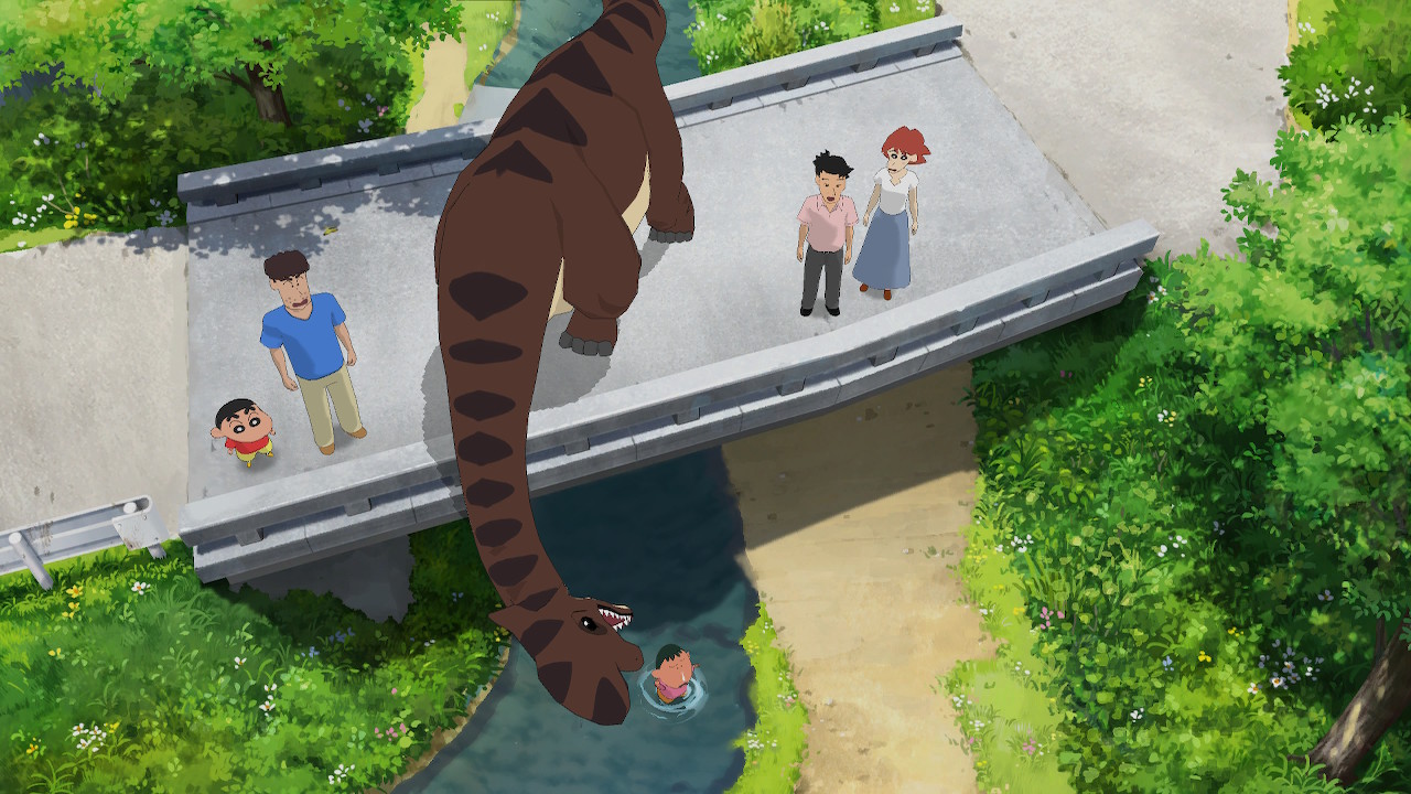 Der Junge Shin chan besucht mit seinen Eltern im Sommer für eine Woche Bekannte im ländlichen Dorf Pampa in Kyushu. Unterwegs treffen sie den zwielichtigen Professor Perfidus, der im Verlauf der Geschichte allerlei Unfug anstellt. Nicht nur wird Shin chan in einer Zeitschleife gefangen, die ihn diese sieben Tage immer wieder durchleben lässt. Bald tauchen auch Dinosaurier in Pampa auf!