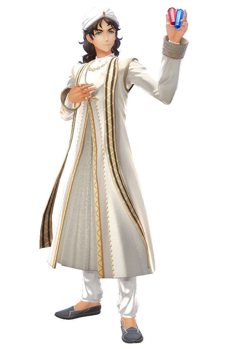 Ein 28-jähriger Prinz aus dem Mittleren Osten. Er ist kulturell interessiert und kämpft mit Edelsteinen und Flöte. Man merkt ihm die adelige Abstammung an, er scheut jedoch nicht den Kontakt zu normalen Leuten und ist manchmal frivol.