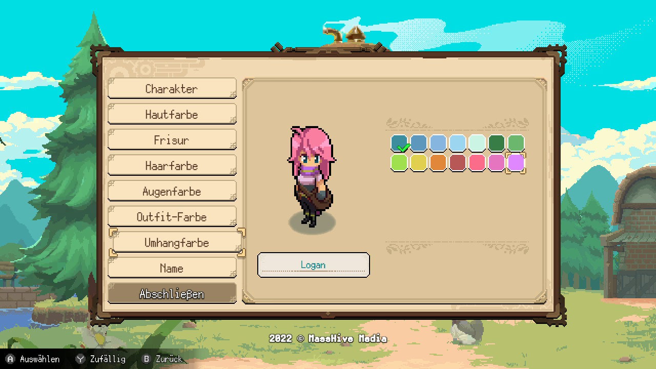 Potion Permit setzt uns zu Beginn des Spiels einen kleinen Charakter-Editor vor die Nase. In diesem können wir unser Geschlecht sowie Haar-, Augen- und Hautfarbe wählen. Der Charakter-Editor ist zwar nur eine abgespeckte Version von dem, was wir aus Rollenspielen gewohnt sind, doch im Vergleich zu vielen anderen Genrevertretern lässt der Titel uns immerhin die Wahl, ob wir mit dunkler Hautfarbe oder neonpinken Haaren durch die Welt laufen wollen.