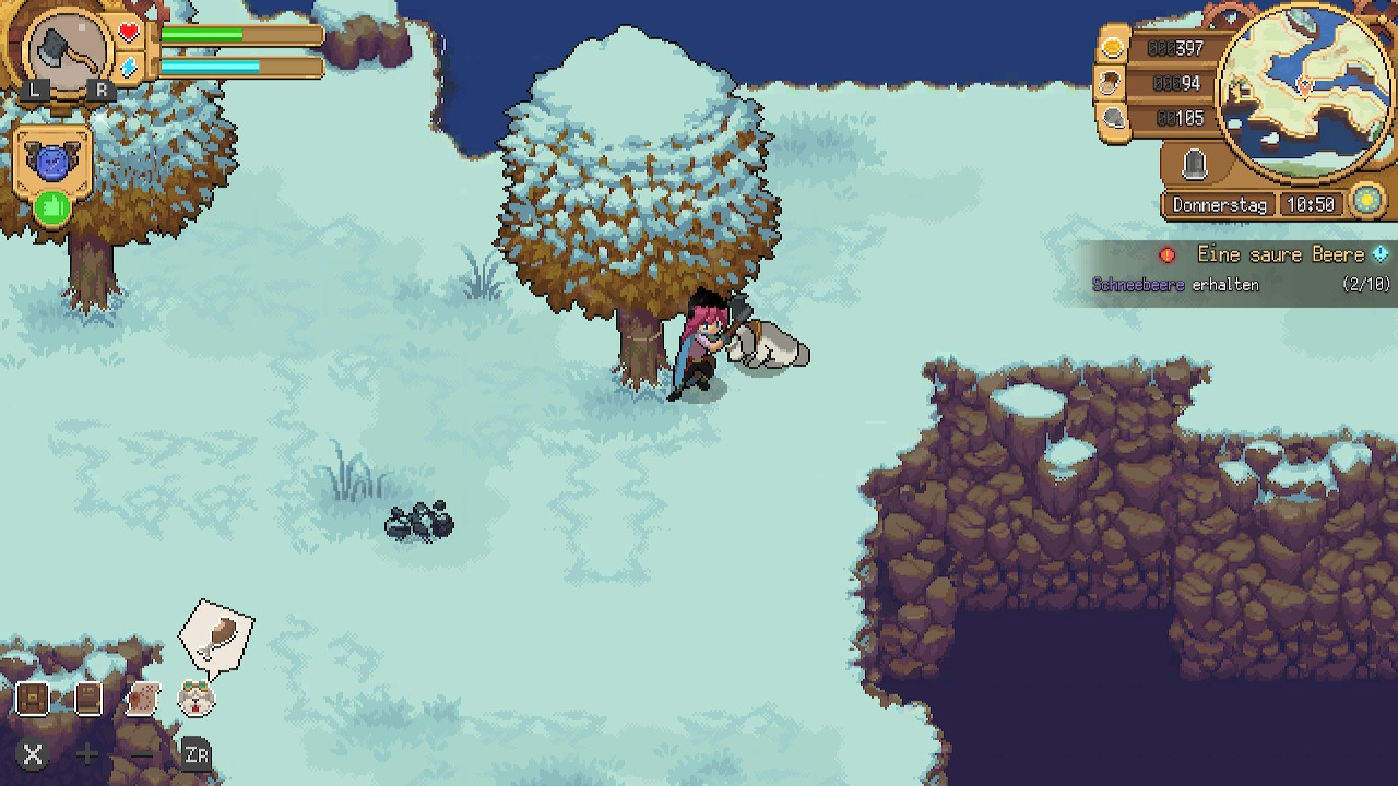 Es ist außerdem schade, dass es keine Jahreszeiten oder Kalenderjahre gibt. In Potion Permit erleben wir nur den Wechsel der Wochentage, die die Öffnungszeiten der Geschäfte bestimmen. Das Spiel wäre noch interessanter und vielfältiger geworden, wenn es unterschiedliche Zutaten zu bestimmten Jahreszeiten gegeben hätte. Doch das kompensieren die Entwickler ein wenig durch die unterschiedlichen Biome, zu denen wir im späteren Zeitverlauf Zugang erhalten.