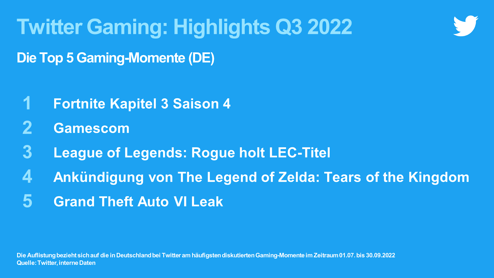 Twitter wertet quartalsweise die aktuellen Trends im deutschen Gaming-Kosmos aus. Über welche Spiele und Themen wurde im zurückliegenden Quartal am meisten gesprochen?
