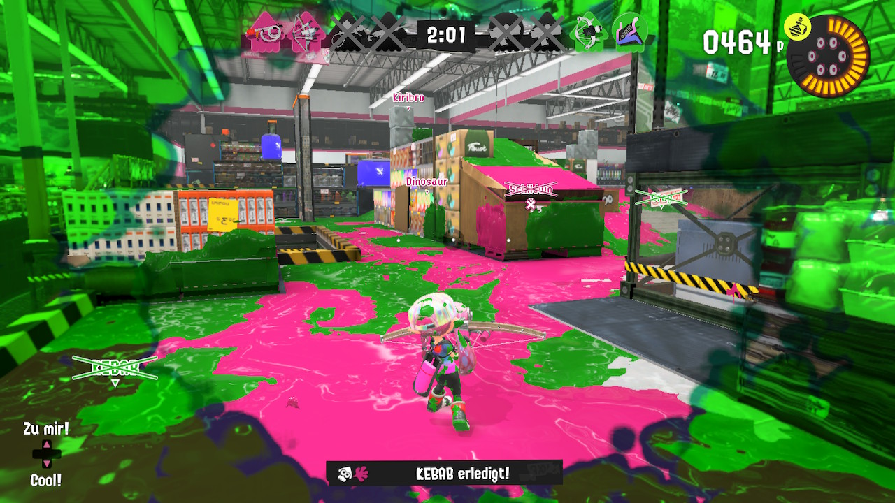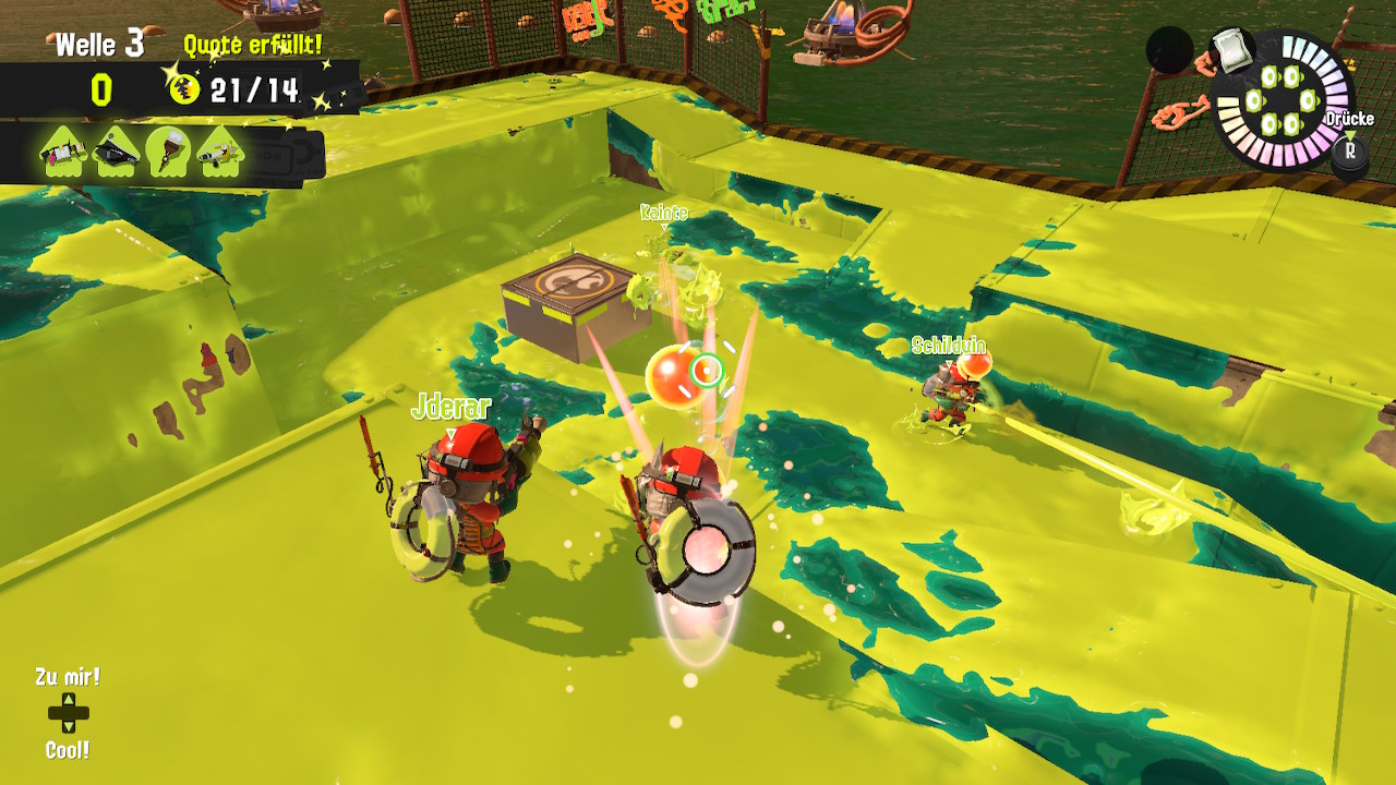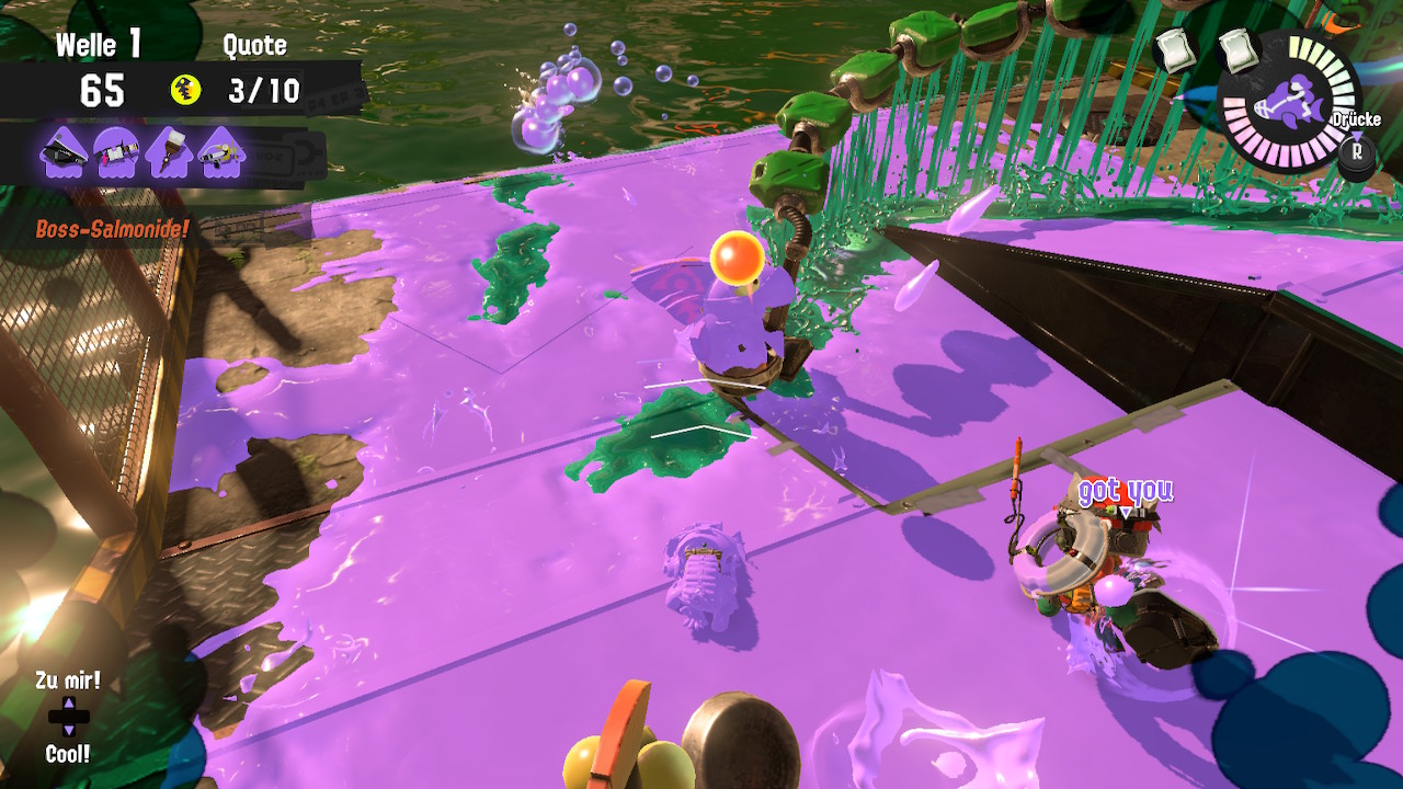 Die Spezial-Attacken hingegen entschleunigen für mich das Spielgeschehen. Es ist schwerer geworden, mit den einzelnen Attacken zu treffen, sei es die überdimensionierte Krabbe oder das Fischwesen, das uns in gerader Linie durch die Tinte zieht. Auch das Killergeheul, das fünf Mini-Strahler um einen platziert, ist kein Garant mehr für einen Treffer.