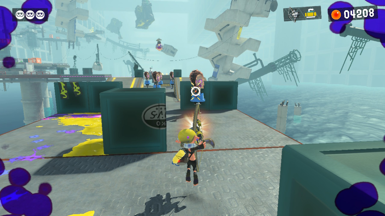 Auch abseits dessen trumpft Splatoon 3 mit Neuerungen wie den Supersprüngen an Wänden, neuen Waffen und neuen Fähigkeiten auf. Die neuen Waffen bringen frischen Wind in das Gameplay, denn beim Katana und beim Bogen können die Achsen, mit denen die Tinte verschossen wird, geändert werden.