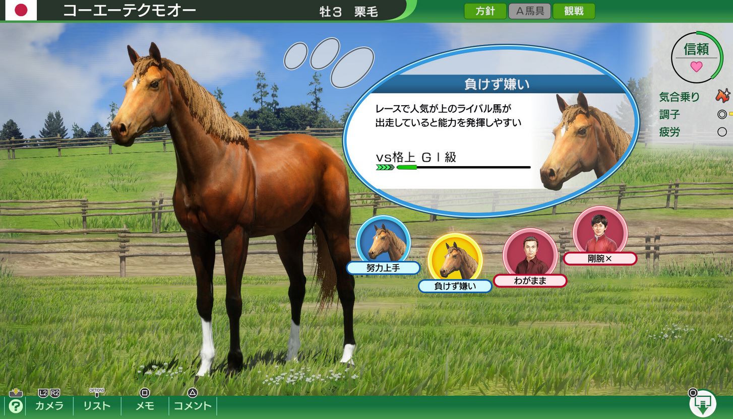 Zum ersten Mal in der Geschichte der Winning-Post-Reihe gibt es nun das sogenannte „Uma-sonality“-System, welches quasi den jeweiligen Charakter beziehungsweise das Temperament des Pferdes abbilden soll. Jedes Pferd hat eigene Vorlieben, Abneigungen, Stärken und Schwächen, die es zu finden und entsprechend zu nutzen gilt.