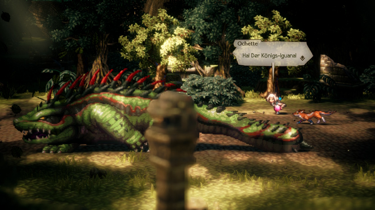 Als Bonus muss ich noch die japanische Synchronisation hervorheben, die einen sehr guten Eindruck hinterlassen kann. Ob es nun der Gegenspieler des Gelehrten Osvalds ist, der durch Takehito Koyasu in feinster DIO-Manier dargestellt wird, oder das Wildlingsmädchen Ochette, die mit ihren zuckersüßen Knurrgeräuschen unterhalten kann – auch hier floss viel Liebe in das Projekt mit ein.