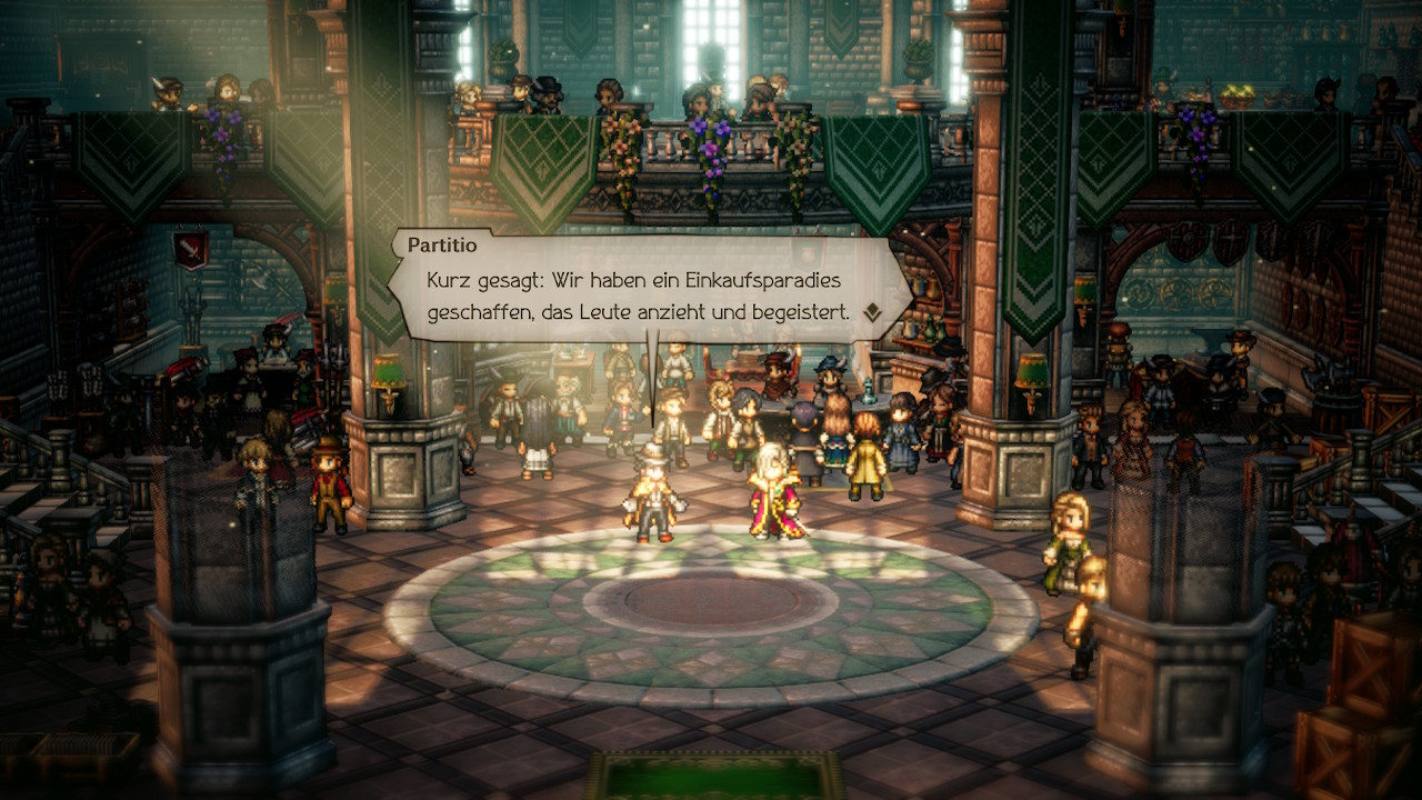 Natürlich gibt es ansonsten auch bei den einzelnen Geschichten der Charaktere wieder Überschneidungen. Das war nämlich auch schon im ersten Spiel der Fall, wenn auch sehr subtil und weit am jeweiligen Ende der Handlung angesiedelt. Octopath Traveler II schafft es ebenso wieder, die Welt mit in den Vordergrund zu stellen. Nationen, Städte und Dörfer sind Teil eines großen Ganzen und existieren nicht nur einfach als Mittel zum Zweck.