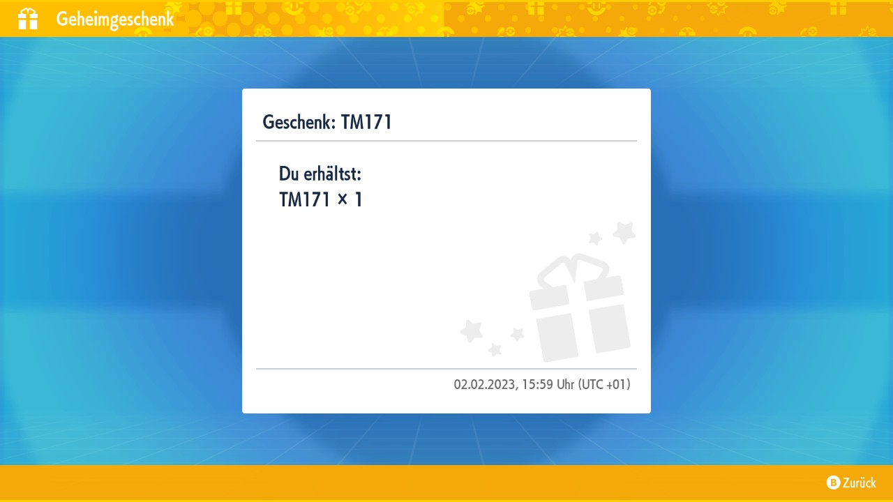 Dieser Code ist einmalig bis zum 31. März 2023 um 16:59 Uhr einlösbar. Die TM eignet sich vor allem für Trainer, die das Spiel neu beginnen. Denn die TM171 ist auch im Spielverlauf ganz gut verfügbar. Die TM171 wurde erst in Paldea eingeführt.