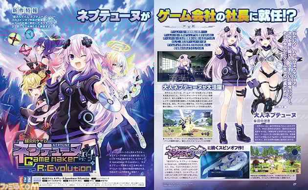 Neptunia GameMaker R:Evolution ist ein Spin-off, in dem die erwachsene Neptune die Hauptrolle spielt. Die Geschichte spielt in einer Ära der konkurrierenden Spielestudios. Drei Göttinnen, die bereits als Spielentwickler in der Branche tätig waren, haben ihren „Marktanteil“ verloren und ihnen droht der Untergang.
