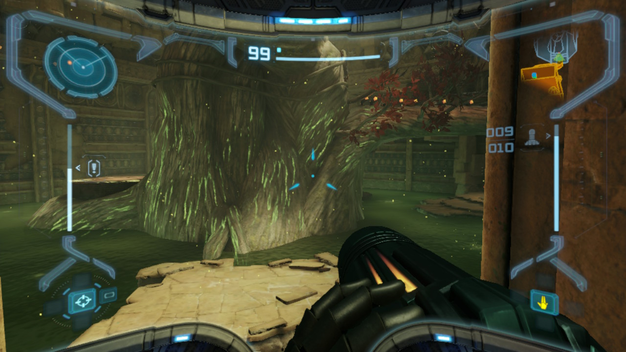 Unterstützt wird das Ganze von den unterschiedlichen Steuerungsmöglichkeiten. Metroid Prime spielt sich zwar aus der Ego-Perspektive, ist jedoch kein klassischer Shooter. Bei der Anvisierung von Gegnern unterstützt euch ein Lock-on-System, mit dem ihr Gegner leichter trefft. Zusätzlich habt ihr die Auswahl zwischen drei verschiedenen Controller-Optionen. Wer gerne die alte GameCube-Steuerung nutzt oder lieber wie bei der Wii mit Bewegungssteuerung auf die Gegner zielt, kann dies neben der modernen Steuerungskonfiguration (Twin-Stick) einstellen. Dazu gibt es noch die Option der Gyro-Unterstützung.