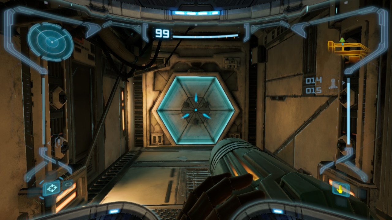 Schön fand ich jedoch, dass mir das Spiel auf der Karte Hinweise nach einer gewissen Zeit angezeigt hat, wenn ich mal nicht weiter wusste. Dabei empfängt Samus plötzlich Daten aus einem Gebietsteil und als SpielerIn weiß man zumindest, wo man hin müsste. Dadurch weiß man allerdings noch nicht, wie genau man dort hinkommt oder was dafür gemacht werden muss. Selbst das hat sich für mich natürlich angefühlt und nicht aufgezwungen. Es fühlt sich so an, als würde der Anzug von Samus immer die passenden Daten lokalisieren und wenn dieser etwas gefunden hat, anzeigen.