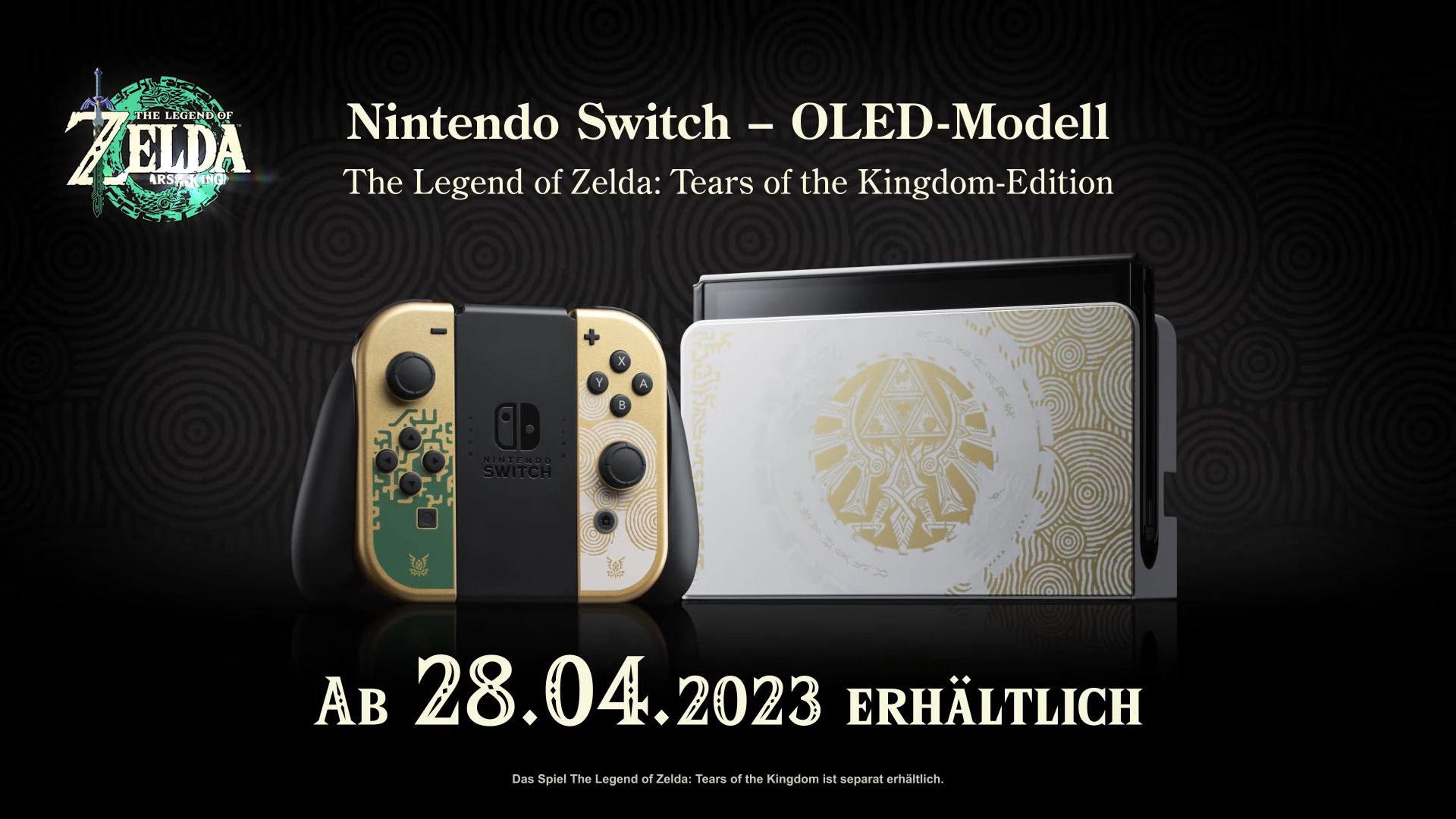 Nach 16 Uhr war es dann auch offiziell. Nintendo präsentierte ein OLED-Modell mit den bekannten Verzierungen, die auf Zelda: Tears of the Kingdom zurückzuführen sind. Die Konsole erscheint bereits am 28. April und damit noch vor dem Spiel, das am 12. Mai 2023 erscheint. Darüber hinaus kündigte man auch noch den passenden Pro Controller und eine neue Tasche an.