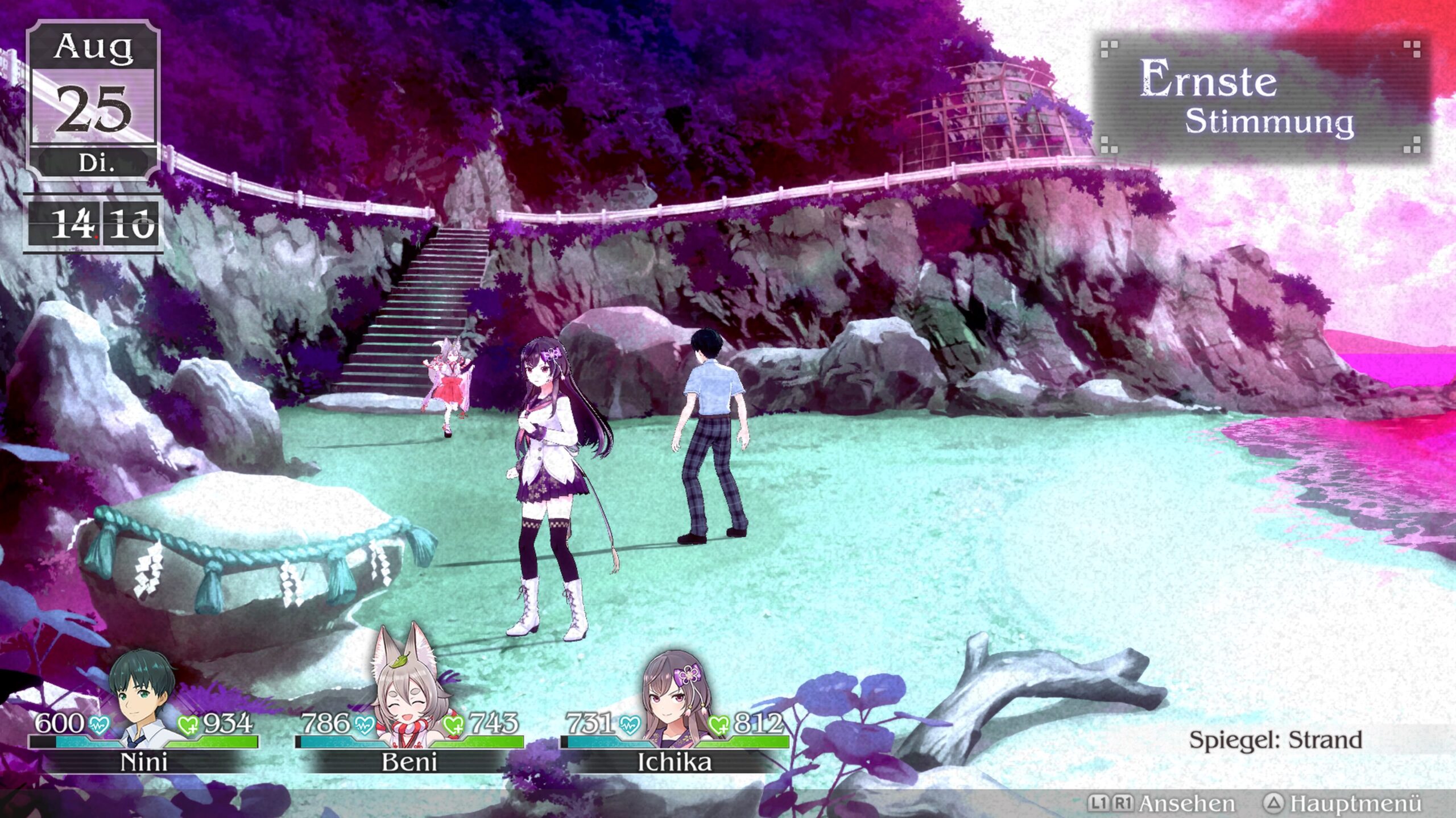 Klassisch endet der Kampf entweder mit eurem oder dem Tod des Gegners. Ist euer Beziehungsstatus jedoch hoch genug, besteht auch die Option die besessene Figur zu retten. Dies macht das Beziehungssystem deutlich wertvoller. Eine Rettung hat auch deutlich mehr Einfluss auf die Reaktionen des Geretteten als auf euch. Ganz im Gegensatz zu den Reaktionen oder nicht vorhandenen Reaktionen der anderen Bewohner von Ashihara.