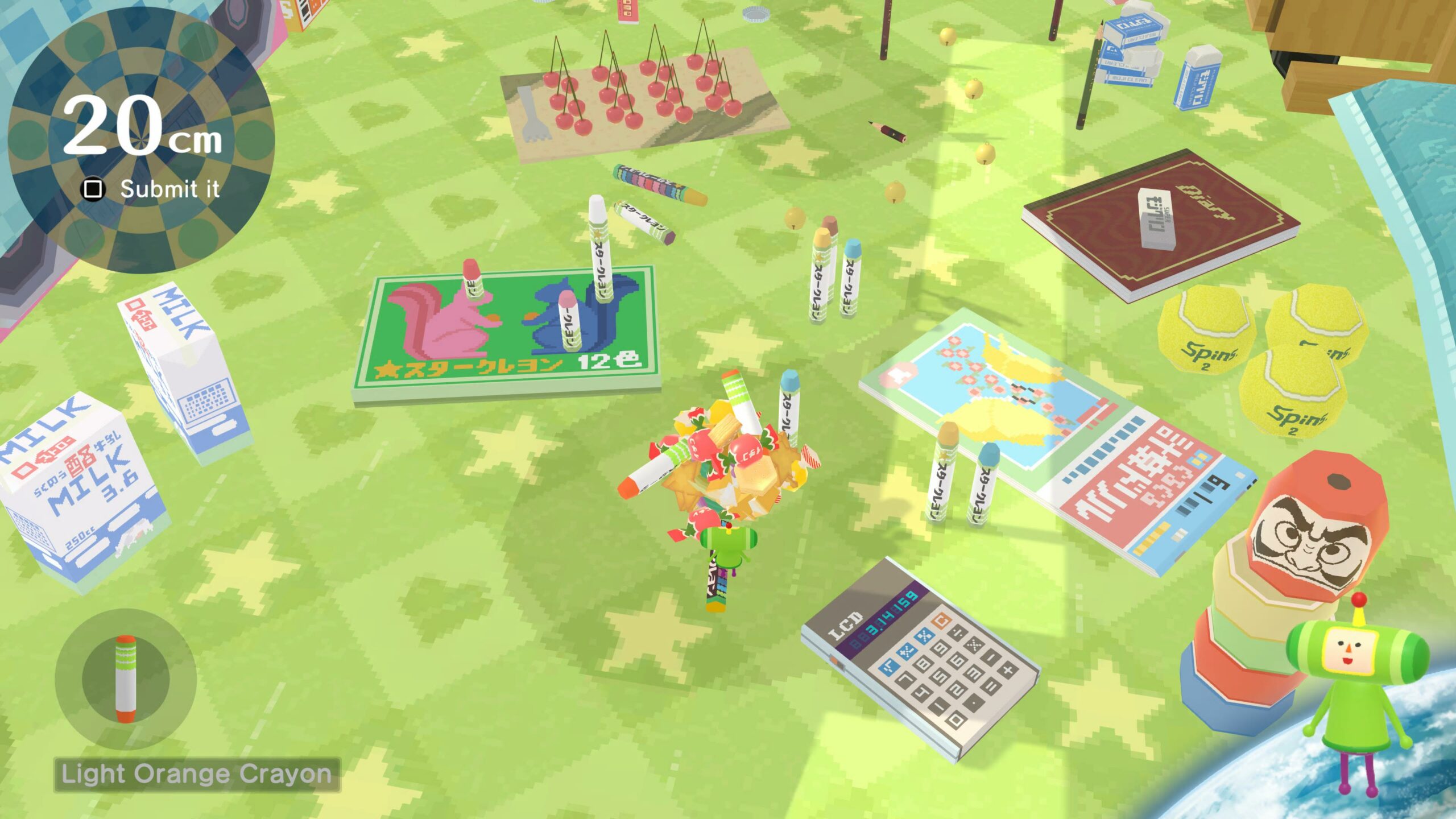 Vor allem aber findet sich der Charme in der Gestaltung der Welt wieder. Die meisten der Level bilden einen japanischen Mikrokosmos ab. Es gibt Kinderzimmer, Schulen, Gemeinschaftsplätze und ganze Städte. Von Büroartikeln über Süßigkeiten bis hin zu Menschen, Gebäuden, Inseln, Wolken und sogar Planeten macht der Katamari vor nichts Halt.