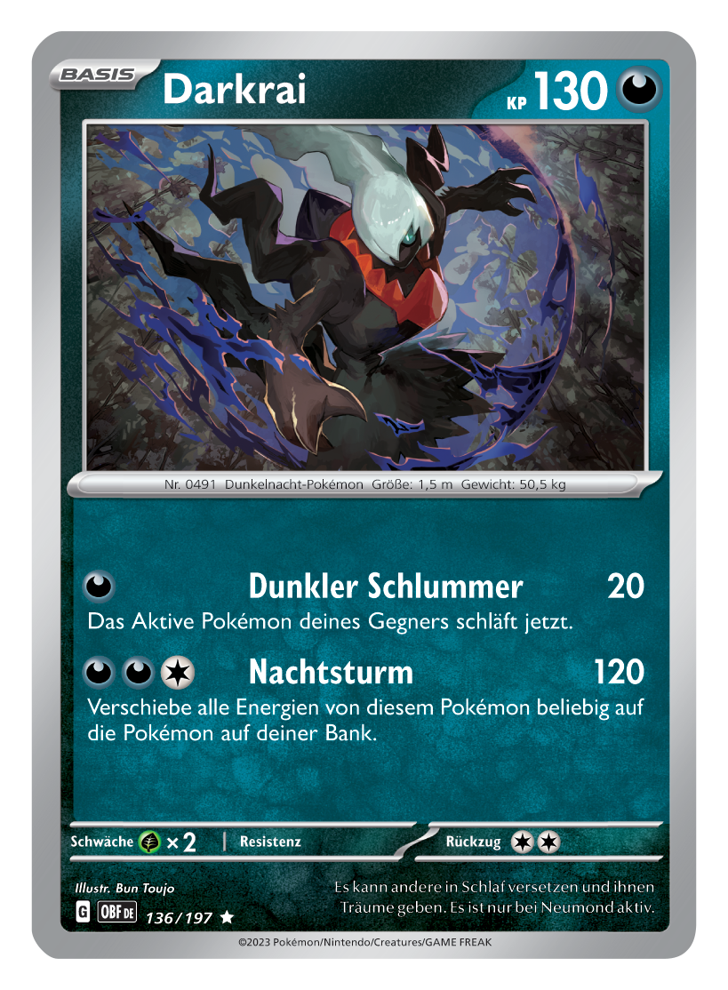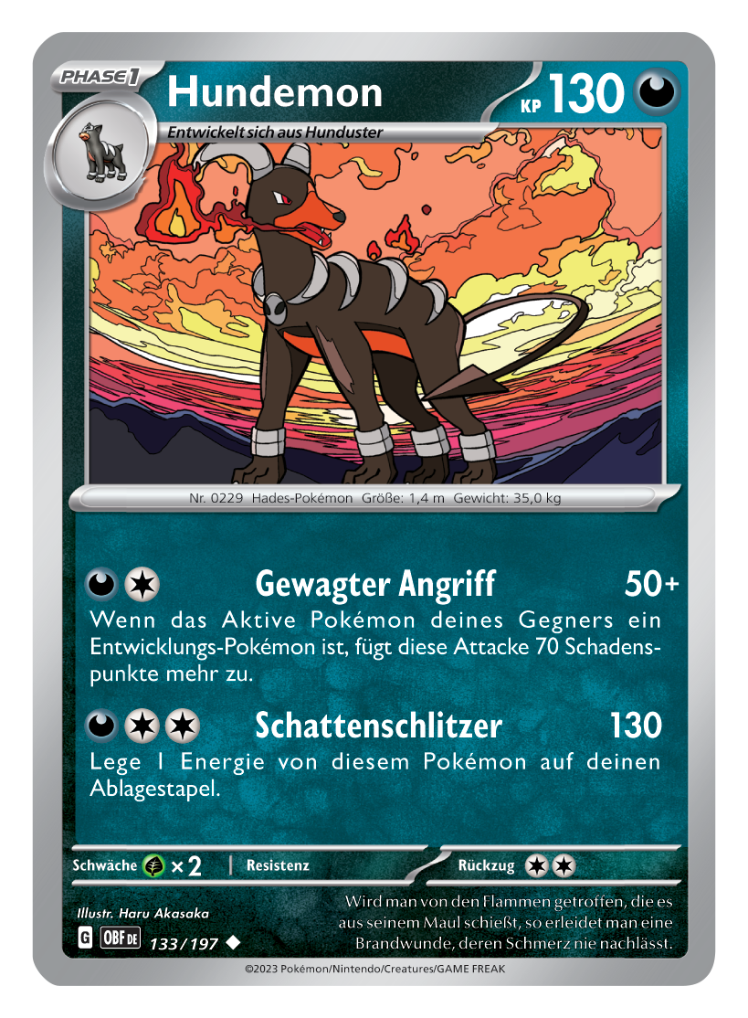Einmal mehr haben wir dank The Pokémon Company die Gelegenheit, euch einen exklusiven ersten Blick auf drei der neuen Karten aus der kommenden Erweiterung „Obsidianflammen“ zum Pokémon-Sammelkartenspiel zu geben. Seht nachfolgend die deutschen Kartenmotive zu Darkrai, Hundemon und Tauboss-ex!