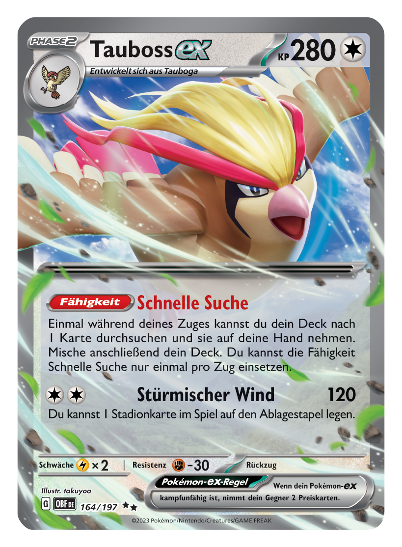 Für diese Karten gelten die gleichen Regeln wie für bisherige Pokémon-ex: Wenn ein Terakristall-Pokémon-ex mit Typenwandel kampfunfähig wird, nimmt der Gegner zwei Preiskarten anstatt einer. Die Erweiterung „Obsidianflammen“ wird 15 neue Pokémon-ex-Karten, sechs Terakristall-Pokémon-ex und vieles mehr bieten.