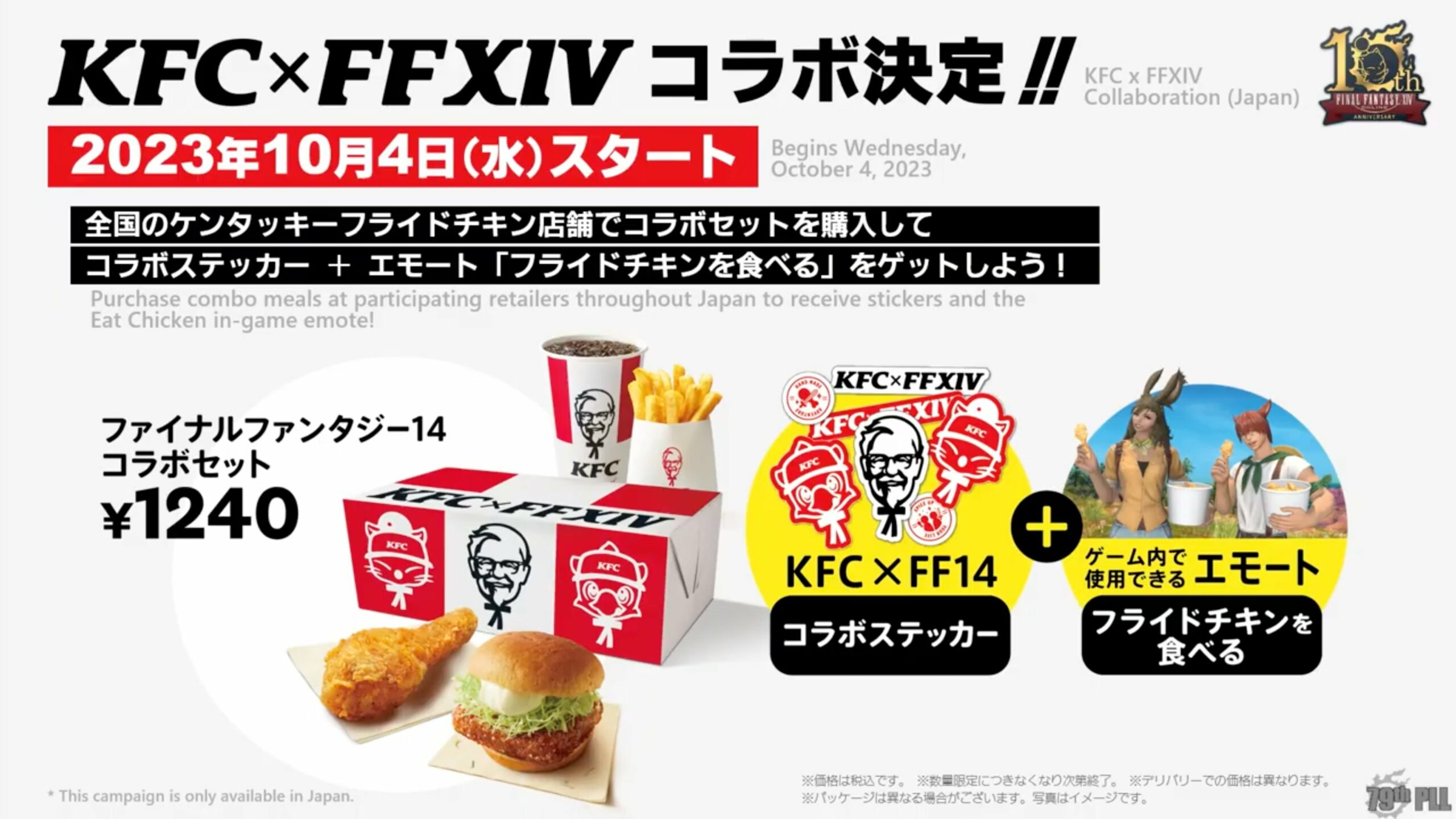 Auch beim 79. Produzentenbrief, der am Sonntag während der Tokyo Game Show 2023 veranstaltet wurde, wurde die Kollaboration noch einmal thematisiert. So soll es bei KFC ein Emote geben, das ihr dann im Spiel verwenden könnt. Die Aktion wird am 4. Oktober 2023 in Japan starten.