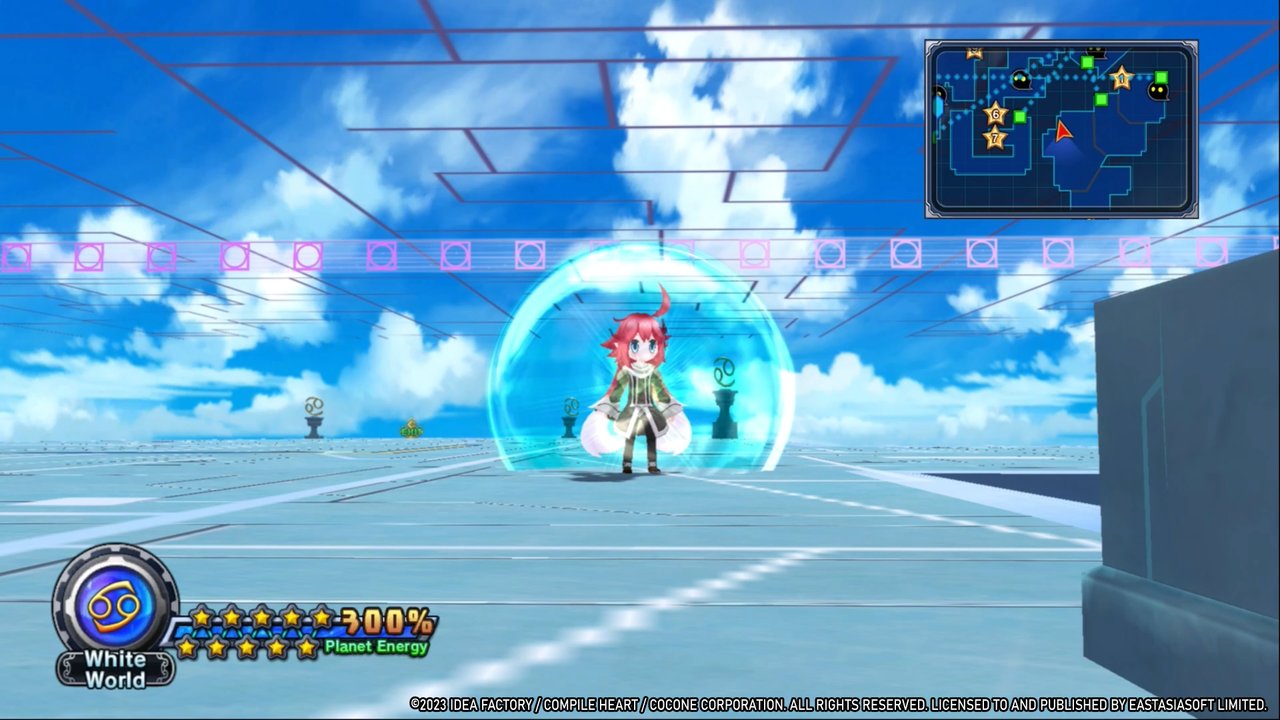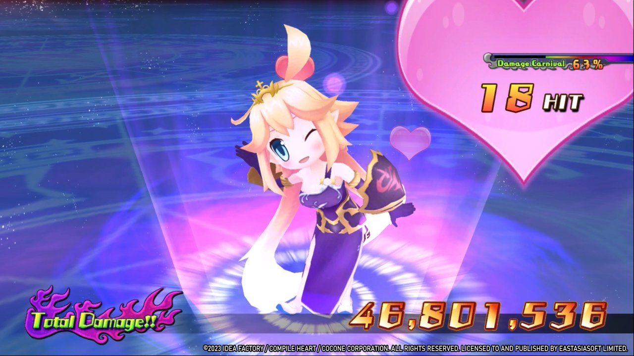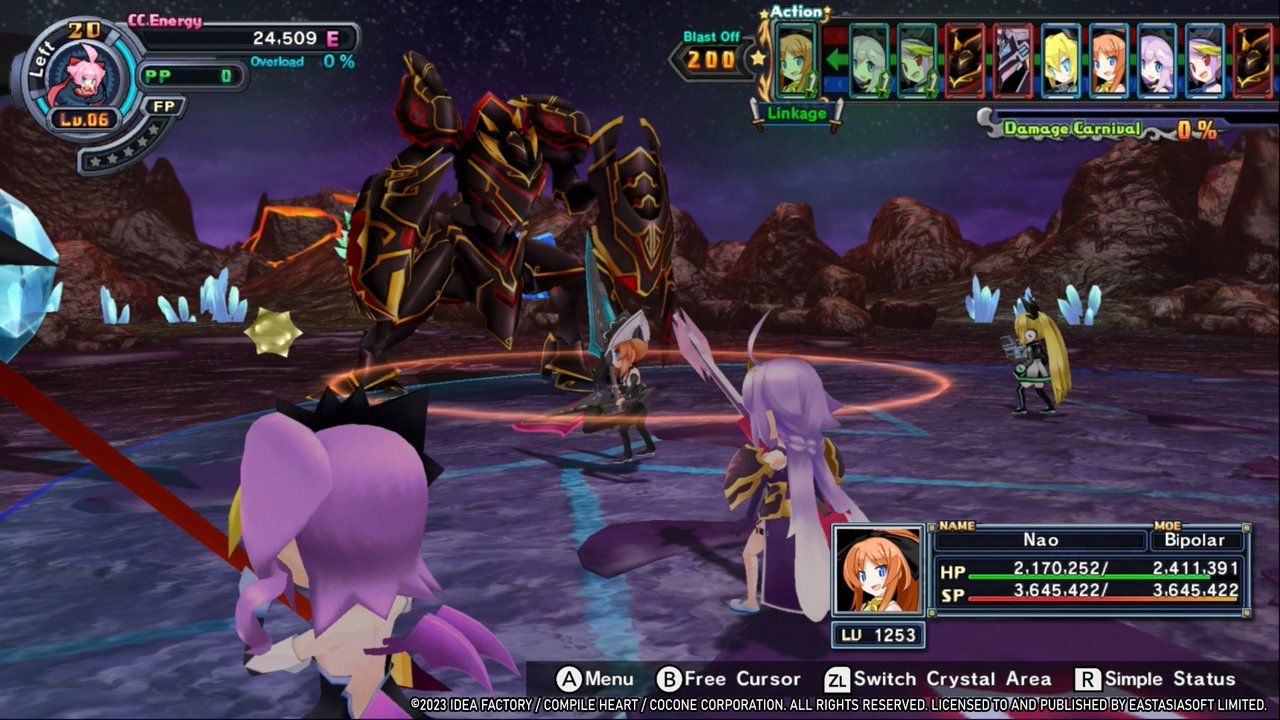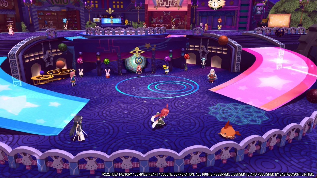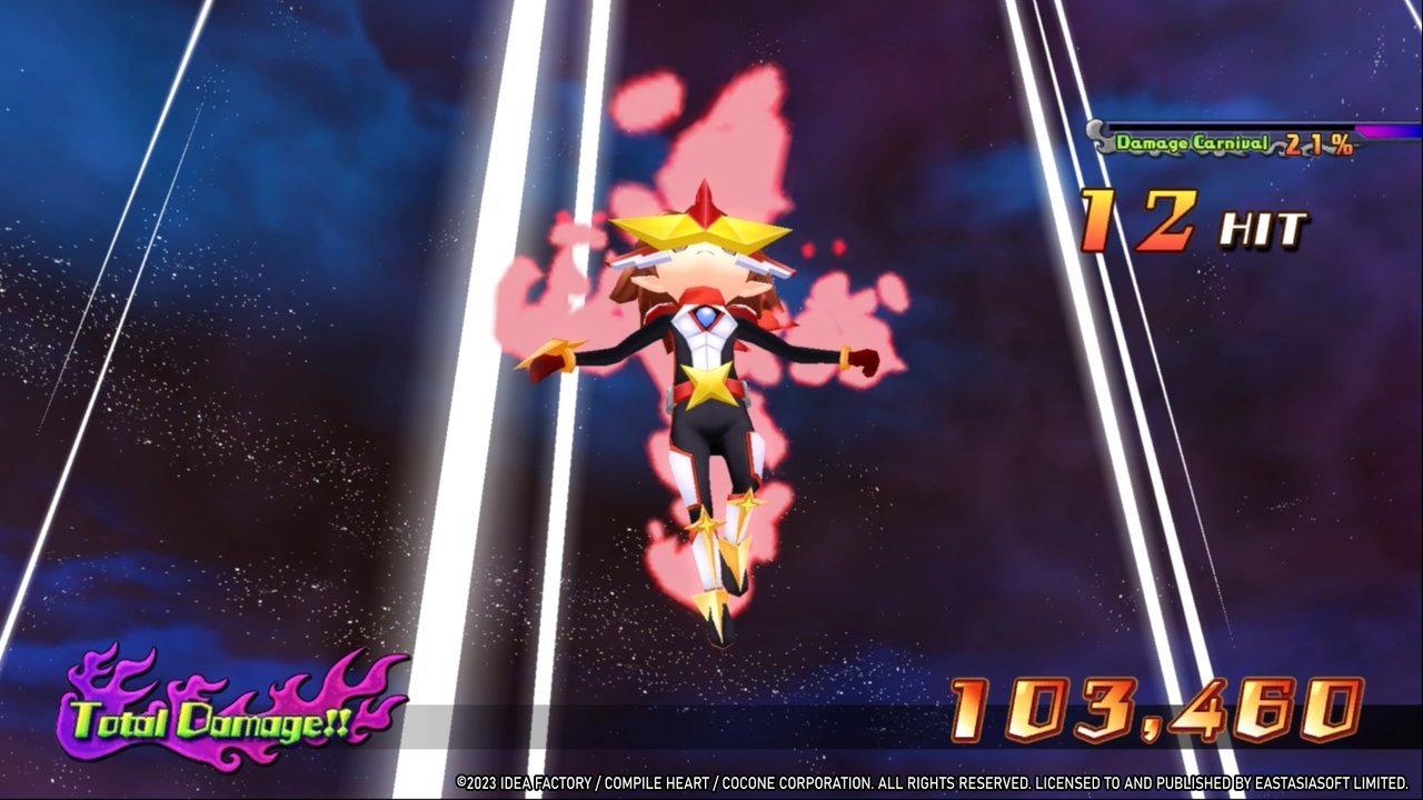 Für das Kampfsystem nimmt man viele Aspekte aus der Disgaea-Reihe und verbindet diese mit den rundenbasierten Kämpfen der neueren Neptunia-Teile. Im Detail sind das unter anderem Kristalle, die in den Kampfarenen verschiedene Statuseffekte hervorrufen, Link-Attacken und die Möglichkeit eigene Partymitglieder heranzuzüchten, gepaart mit der Räumlichkeit von Skills, die Entfernungen und Wirkungsbereiche mit einbezieht.