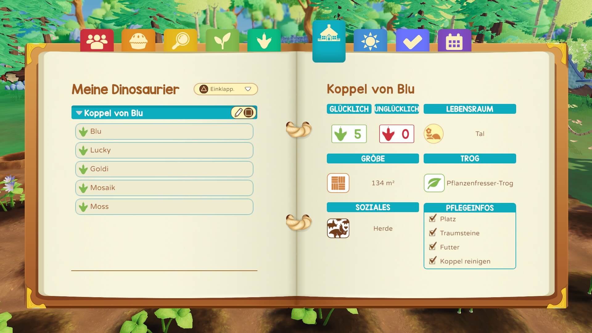 Bei über vierzig Dinos fällt die Wahl nicht leicht. Vor allem, da jede Art auch noch verschiedene Farbmuster aufweist, die unterschiedlich selten sind. Ob Lieblingsdinos sammeln, Dinos mit Fähigkeiten, die das Farmleben optimieren, oder sich einfach auf die Jagd nach seltenen Mustern begeben, für jeden Dino-Fan ist etwas dabei. Und sollte uns doch einmal der Platz ausgehen, können wir die schwere Entscheidung fällen einen Dino zurück in die Wildnis zu entlassen. Aber ganz weg sind sie nie, denn dank Maris Fährtenlesefähigkeiten kann sie unsere alten Freunde jederzeit wieder aufspüren.