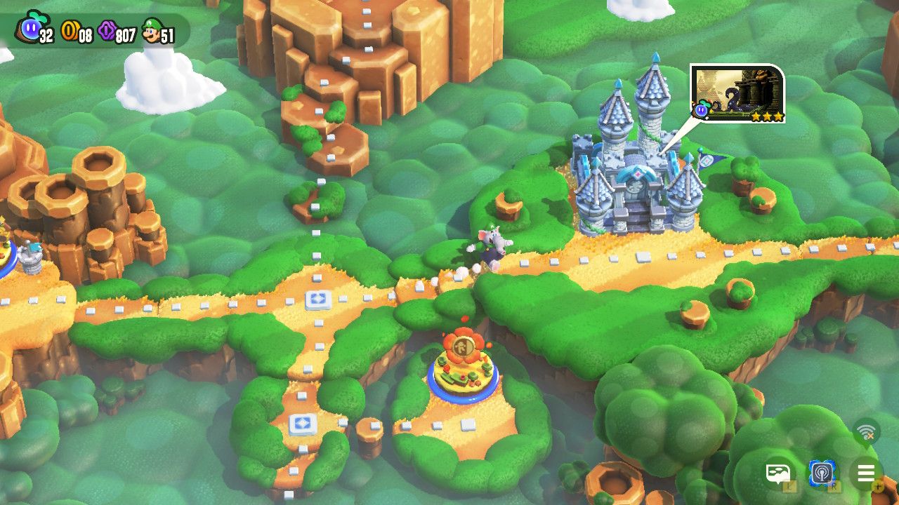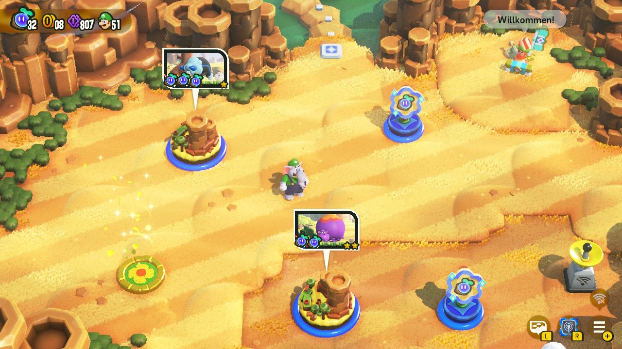 Was gibt es sonst zu sagen? Müsst ihr denn überhaupt noch etwas wissen? Vielleicht noch einige Worte zur Oberwelt. Die ist diesmal einigermaßen „open“ – ihr könnt oft wählen, welches Level ihr als Nächstes angeht und sogar welche Welt. Nur hier und da gibt es noch die typischen „Pünktchenwege“ und natürlich gilt es, erstmal eine bestimmte Menge an Wundersamen zu sammeln, bevor ihr Welten abschließen könnt. Und, na klar: Auch in der Oberwelt gibt es Geheimnisse, die gelüftet werden möchten. Kein Game-Changer, aber eine schöne Spielerei. Ebenso wie die kleinen Easter-Eggs und Anspielungen auf alte Mario-Spiele und Popkultur. Mein Liebling: ein Cameo in Erinnerung an Michael Ende – für mich jedenfalls zu auffällig, um Zufall zu sein.