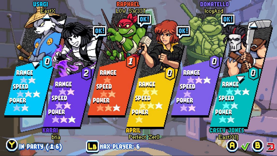 Bis zu sechs SpielerInnen können den gegnerischen Horden des Foot Clans gleichzeitig eins auf die Mütze geben. Das Tolle daran ist die Tatsache, dass sich Offline-Couch-Koop und Online-Modus verbinden lassen.