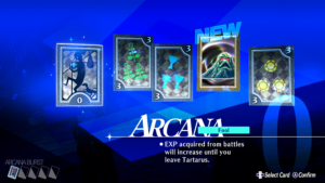 Nicht zuletzt warten natürlich auch viele Kämpfe im Tartarus. Nach einem siegreichen Kampf geht es in die Bonusrunde namens Shuffle Time. Karten, die ihr hier auswählt, verleihen besondere Effekte und Personas. Manchmal findet ihr auch „Große Arkana“-Karten mit Spezialeffekten. Sammelt alle dieser Karten für einen Arkana-Schub, der „Kleines Arkana“-Karten für den Rest des Tages hochstuft.