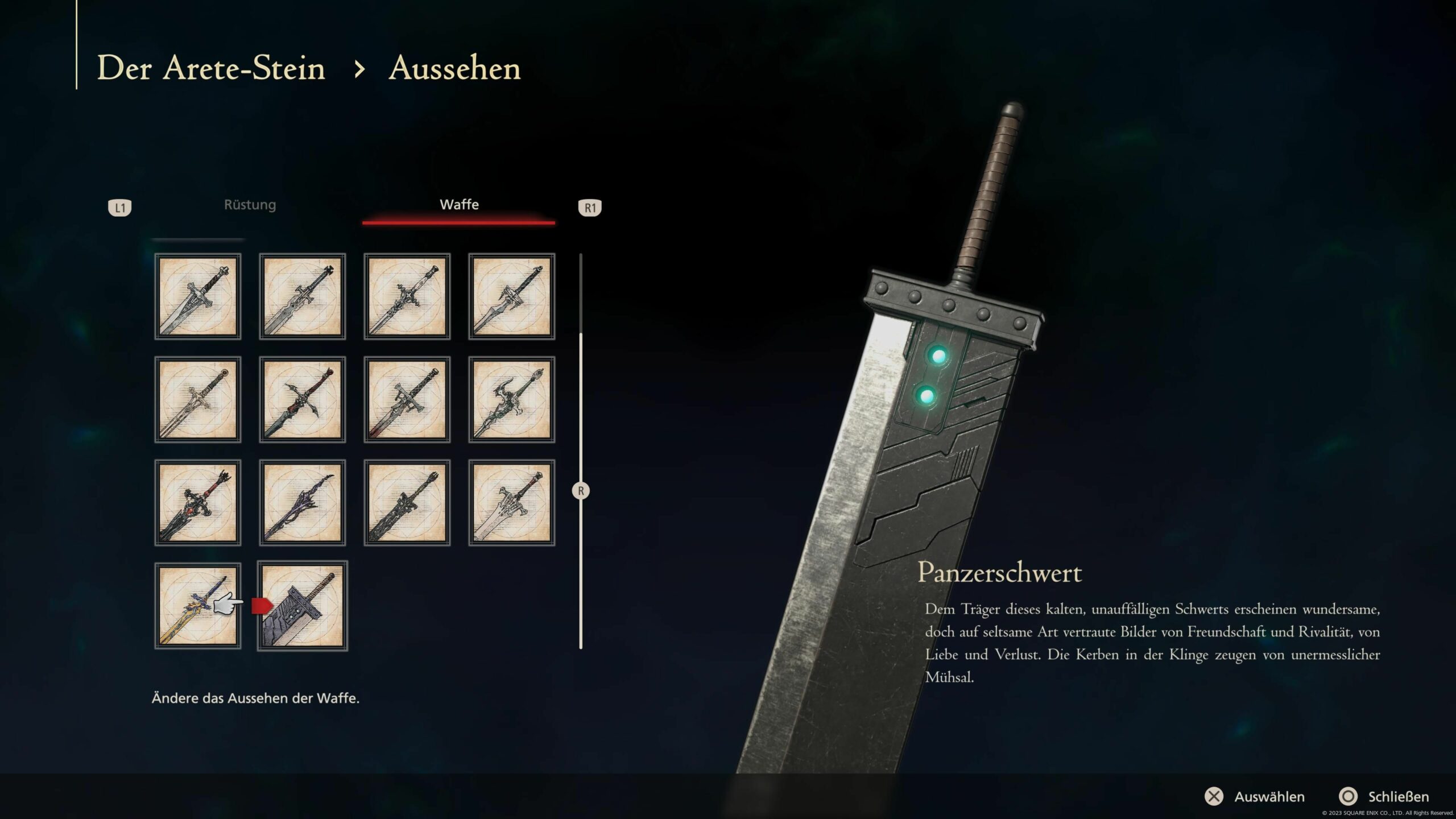 Falls euch das Schwert so gut gefällt, dass ihr es immer tragen möchtet, hier zur Erinnerung: Am Arete-Stein im Versteck könnt ihr euer Lieblingsschwert für die „Optik“ auswählen, ohne dass euer getragenes Schwert seine Werte verliert.