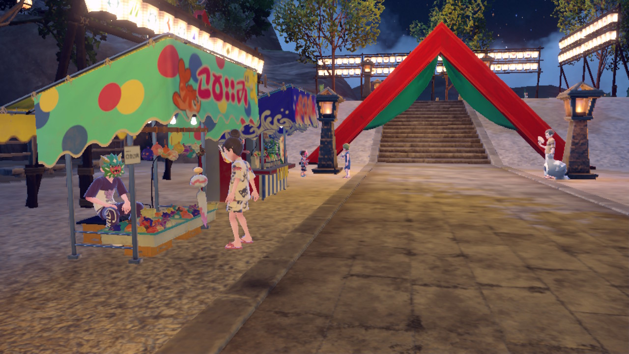 Auf einem Kulturfest schmücken wir uns mit Masken, futtern Süßspeisen und nehmen am Oni-Austreibungsspiel teil. Bei diesem Minispiel lassen wir so schnell wie möglich eine bestimmte Anzahl farbiger Ballons platzen und bringen die daraus erhaltenen Beeren zu vorbereiteten Schüsseln. Je nach Leistung erhalten wir dafür Mochi, mit denen wir die Statuswerte unserer Pokémon dauerhaft erhöhen können.
