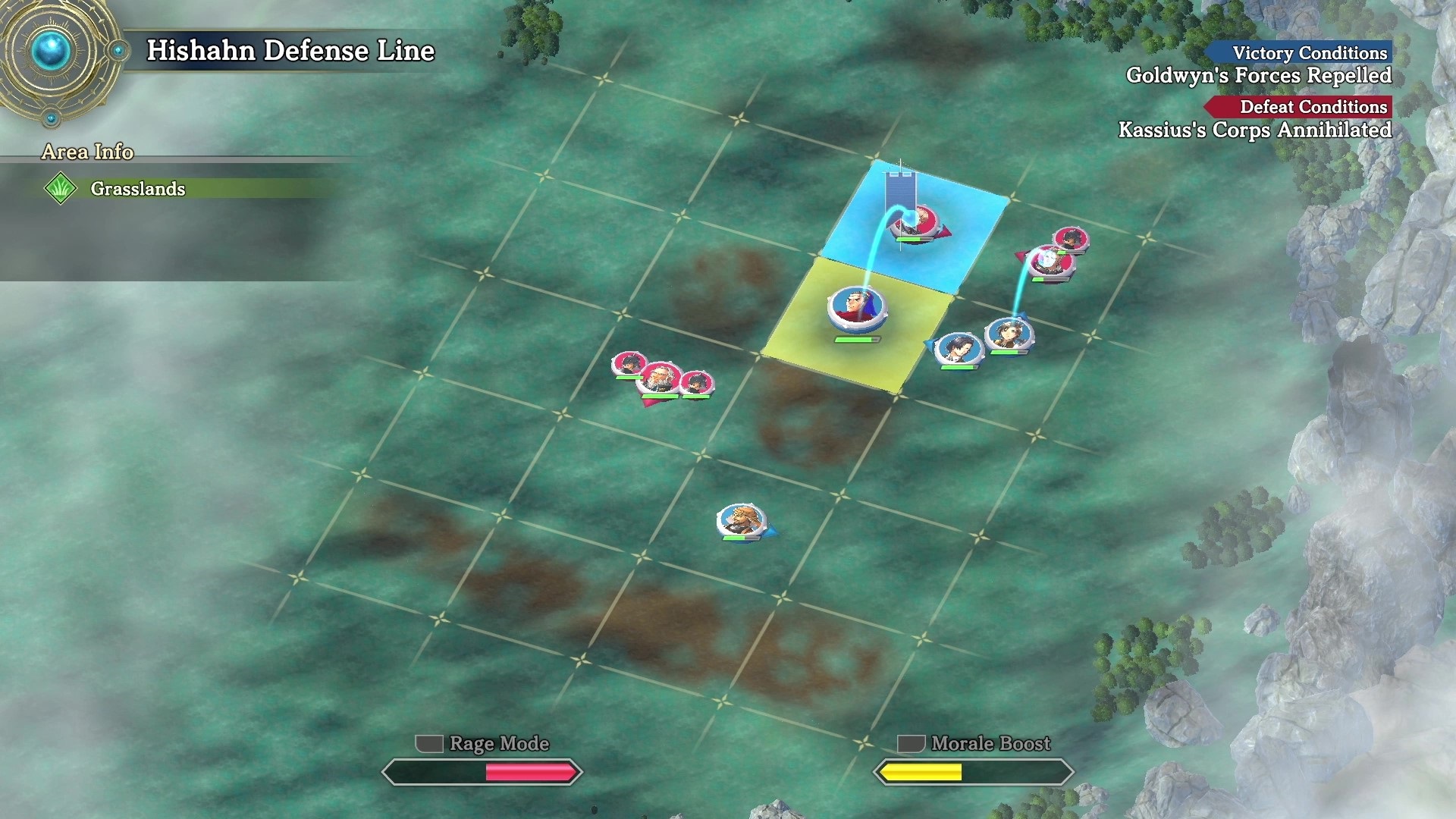 Der zweite der neuen Screenshots zeigt einen Blick auf einen Kampf im Kriegsmodus. Schlachten werden auf einem gerasterten Feld ausgetragen, Symbole stellen dabei die Charaktere dar, die SpielerInnen in den Kampf schicken.