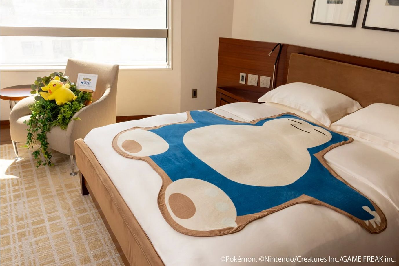 Das Grand Hyatt Hotel in Tokio hat seine Präsidentensuite in die Grasgrün-Insel aus dem Spiel verwandelt. Die Suite verfügt über einen grünen Teppich, der das Gras nachbildet, Sträucher und Blumen, die verstreut sind, um das Blattwerk nachzuahmen, und sogar ein kleines Zelt zum Schlafen, obwohl es anscheinend auch ein Bett gibt. Es gibt auch ein riesiges Relaxo-Plüschtier im Zimmer, um das sich vier kleinere Pokémon-Plüschtiere versammelt haben. Und die dürft ihr am Ende eures Aufenthalts auch mitnehmen.