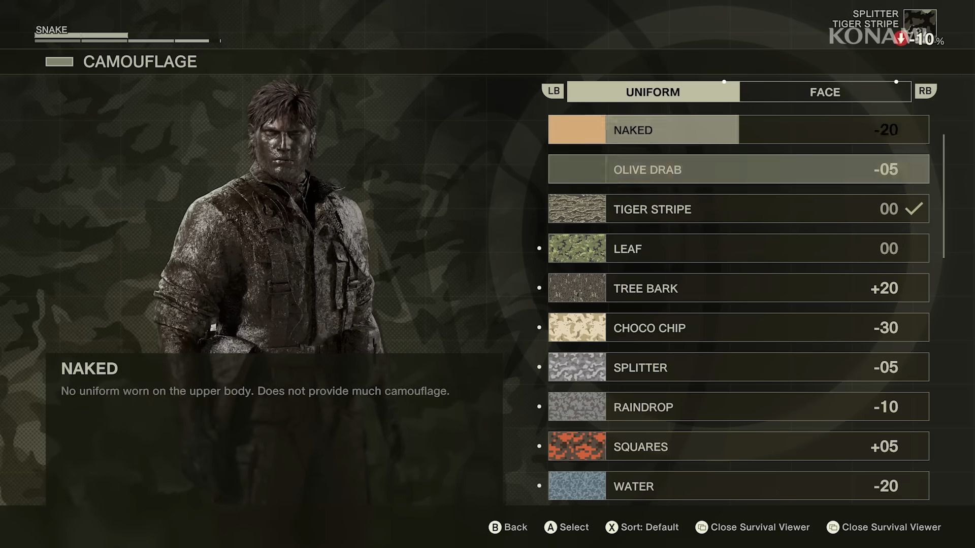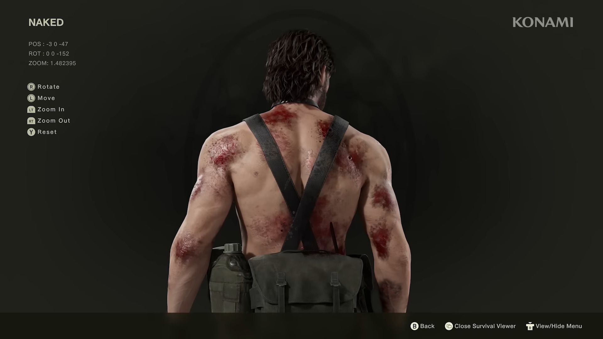 Demnach sollen Snakes Wunden Narben hinterlassen, die über die gesamte Spielzeit hinwegzusehen sein sollen. Außerdem lässt euch der Survival Viewer einen detaillierten Blick auf eure Camouflage werfen – die spielt immerhin bekanntlich auch eine tragende Rolle im Spiel.