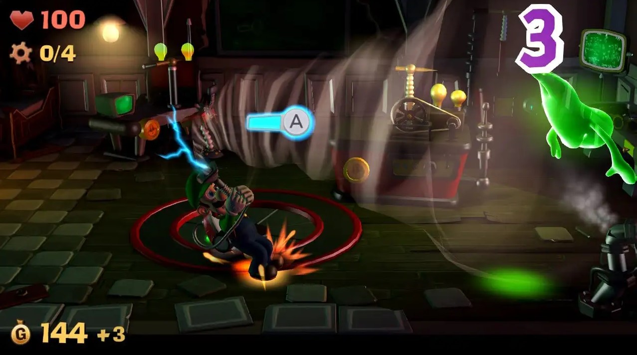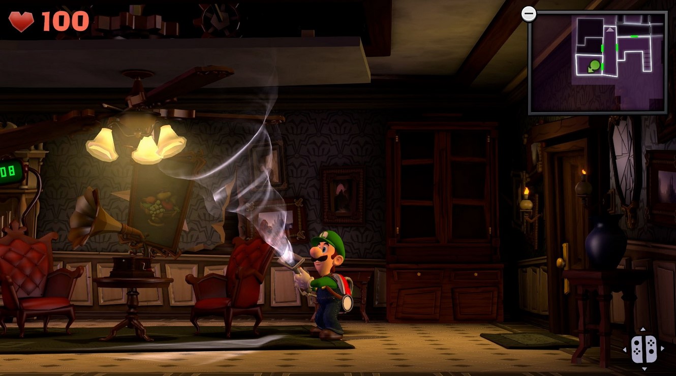 Wie auch schon beim ersten Luigi’s Mansion benötigt ihr auch bei Luigi’s Mansion 2 etwas Zeit, um mit der Steuerung warmzuwerden. Die als „Panzersteuerung“ bekannte Art, die Spielfigur zu steuern, ist gerade zu Beginn des Abenteuers etwas störrisch und gewöhnungsbedürftig. Mit der Zeit gewöhnt man sich jedoch an die Art, wie man Luigi steuern muss.