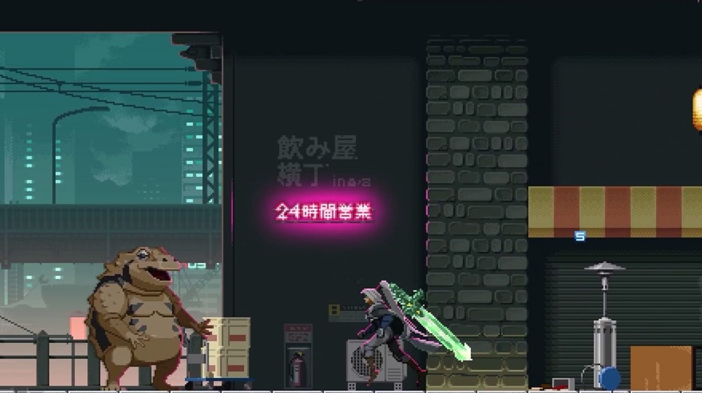 In diesem erkundungsintensiven 2D-Actionspiel greift ihr mit eurem Dämonenschwert in die Vergangenheit ein, erstellt Plattformen und schützt euch vor Gefahren, um eine dystopische Cyberpunk-Welt zu erkunden, die in wunderschön animierter Pixelkunst dargestellt wird.