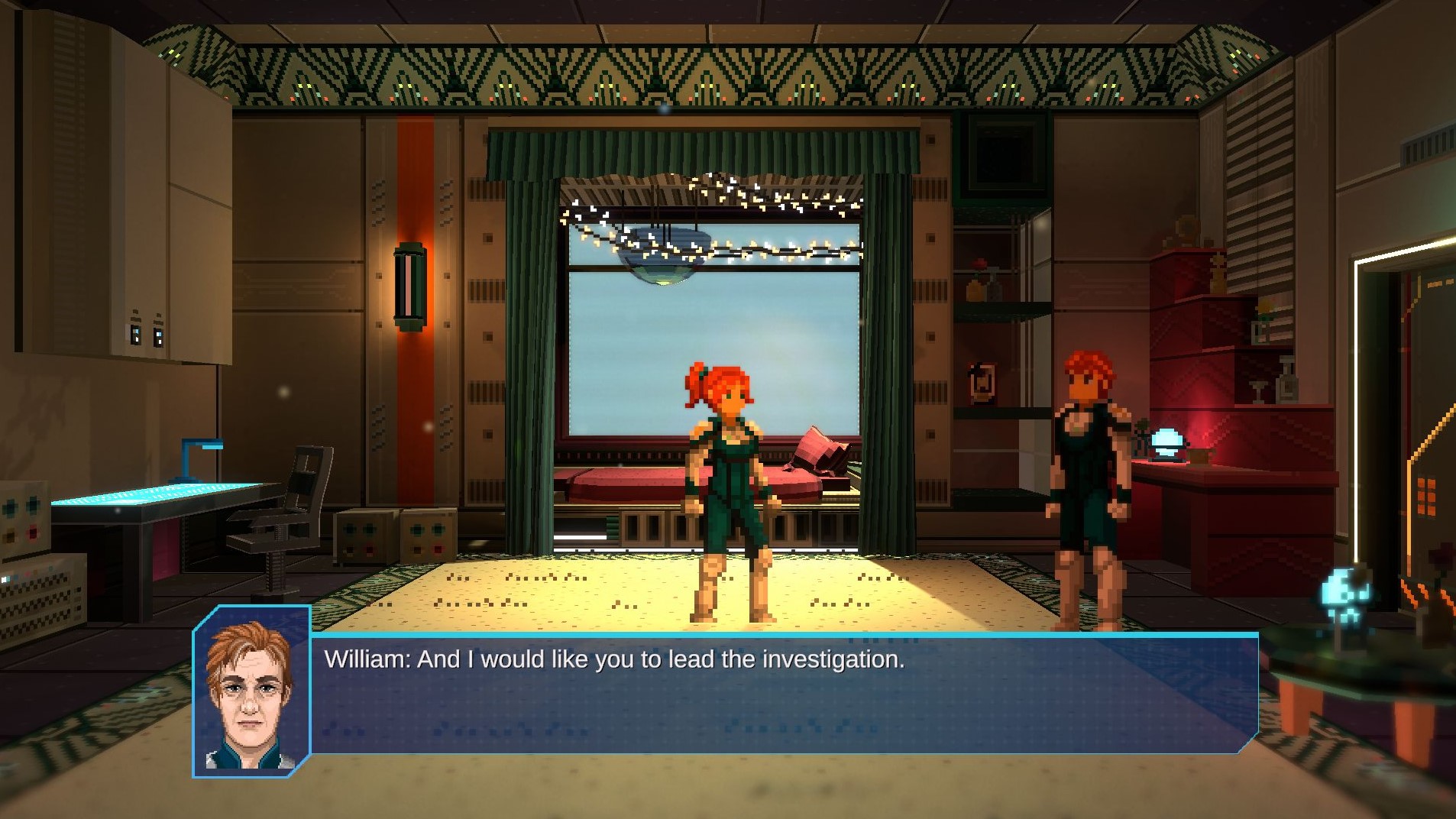 In Between Horizons befinden wir uns auf einem Raumschiff, das sich auf dem Weg zu einem weit entfernten Stern befindet. Wir schlüpfen in die Rolle von Stella, die vor 24 Jahren auf dem Schiff geboren wurde. Als Sicherheitschefin müssen wir uns einer Verschwörung stellen, die für Unruhen sorgt.