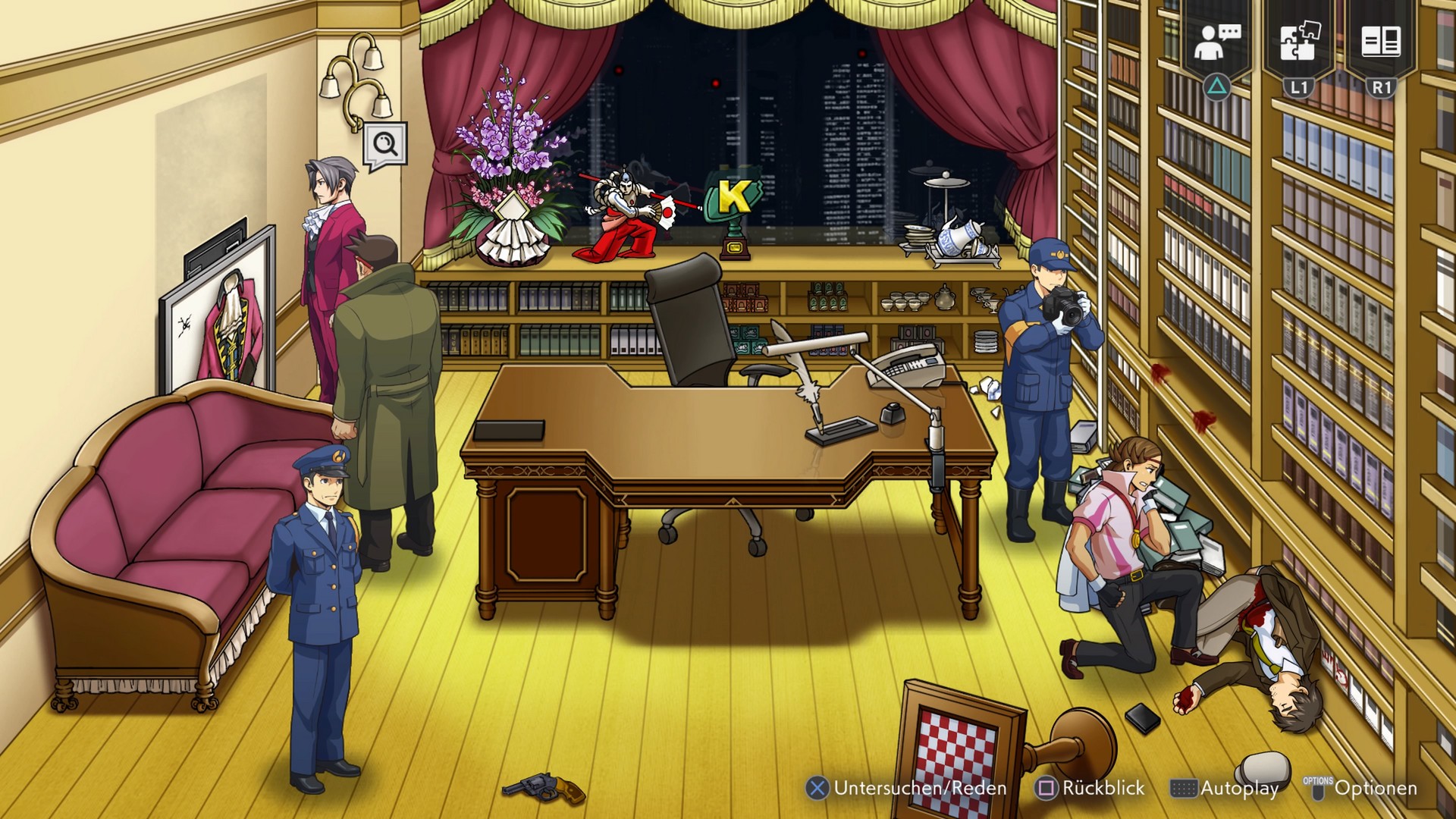 Wer mit Ace Attorney vertraut ist, fühlt sich bei der Investigations-Reihe direkt zu Hause. Wie gewohnt erkunden wir Tatorte und umliegende Areale, finden dabei Hinweise und unterhalten uns mit Personen, um weitere Informationen zu erhalten. Unseren Fortschritt können wir dabei wieder in unserem Aktenkoffer überprüfen.