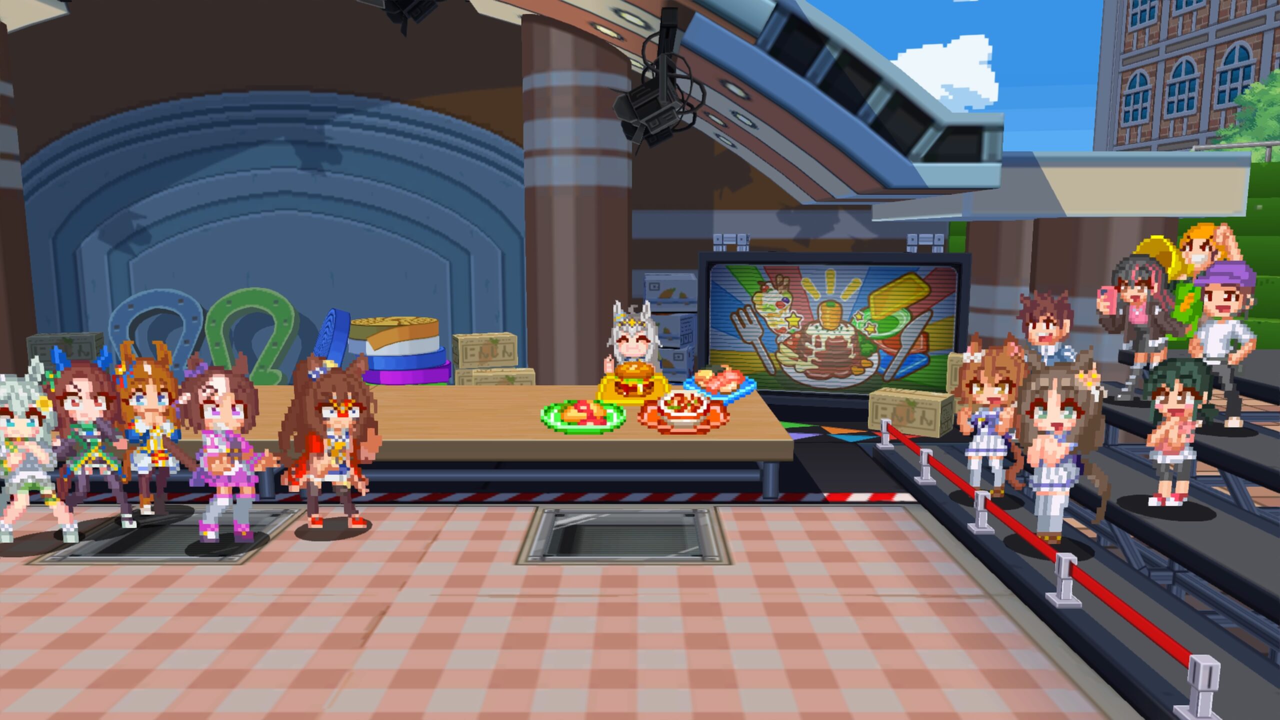 Der letzte große Wettbewerb ist das Wettessen. Die Mädchen teilen sich hier in Zweier-Teams auf, wobei eines als Esser deklariert wird und das andere Essen einsammelt und auftischt. Beide Pferdemädchen haben hier einzelne Skills, die helfen können, das Essen schneller herunterzuschlingen oder die Gegner beim Aufsammeln zu hindern. Ebenso ist es wichtig, bestimmte Farben an Tellern zu kombinieren, um eine Kombo zu erzeugen. Diese führt dazu, dass die Esserin schneller den Tisch leer bekommt und man somit Platz schafft für mehr Essen und letztlich auch wichtige Punkte sammelt.